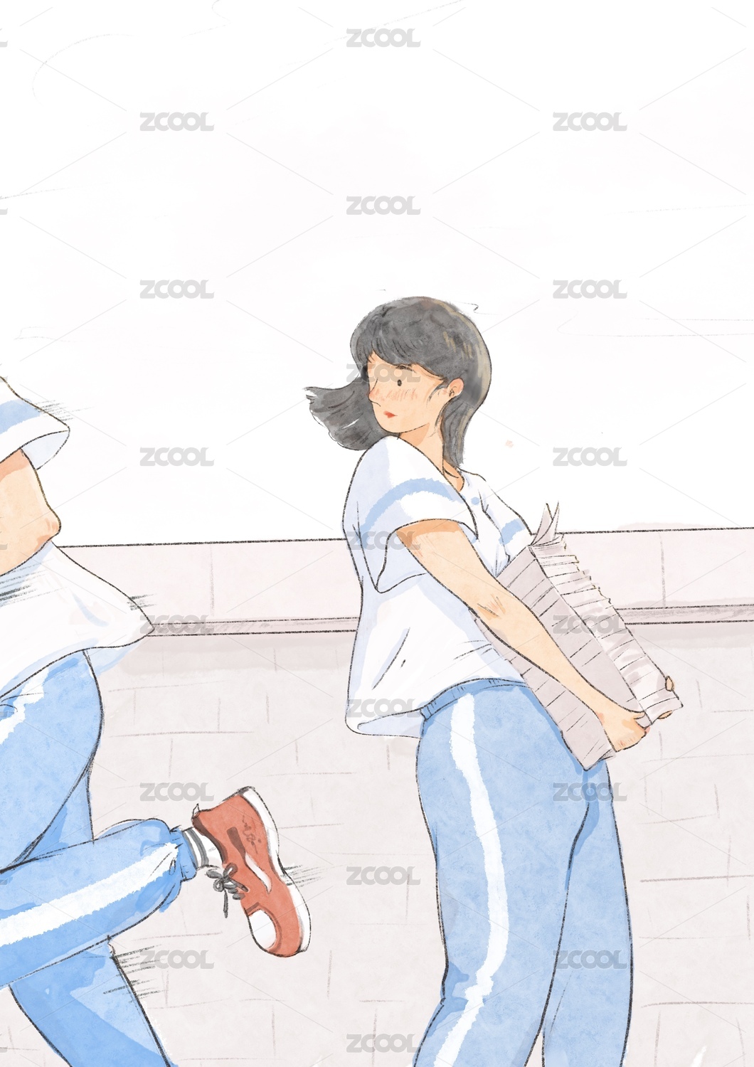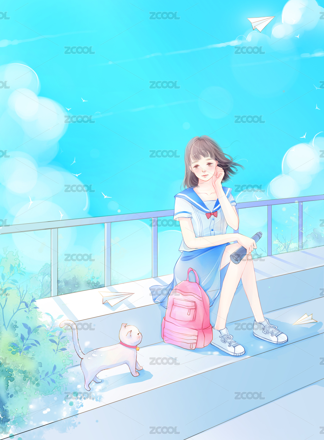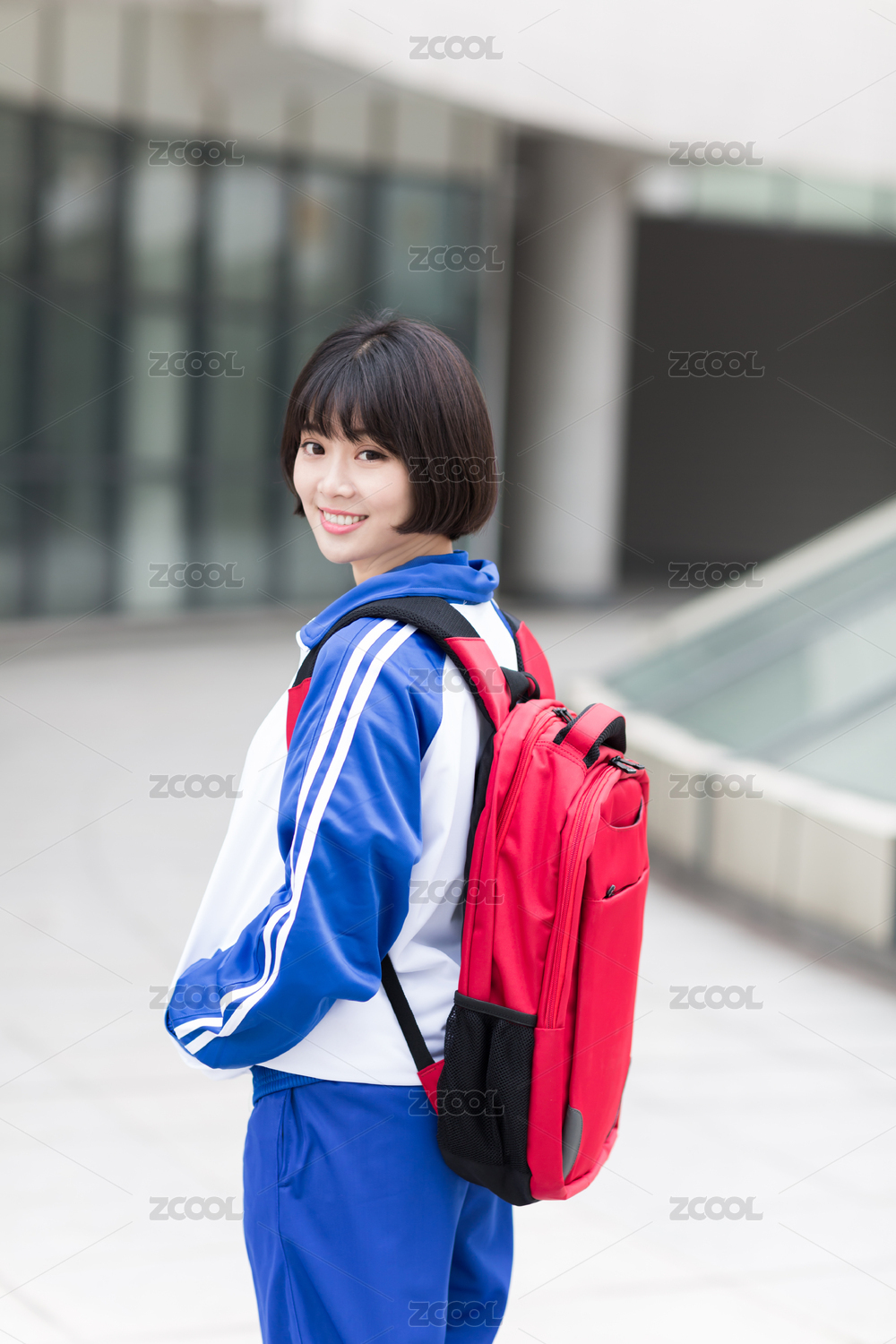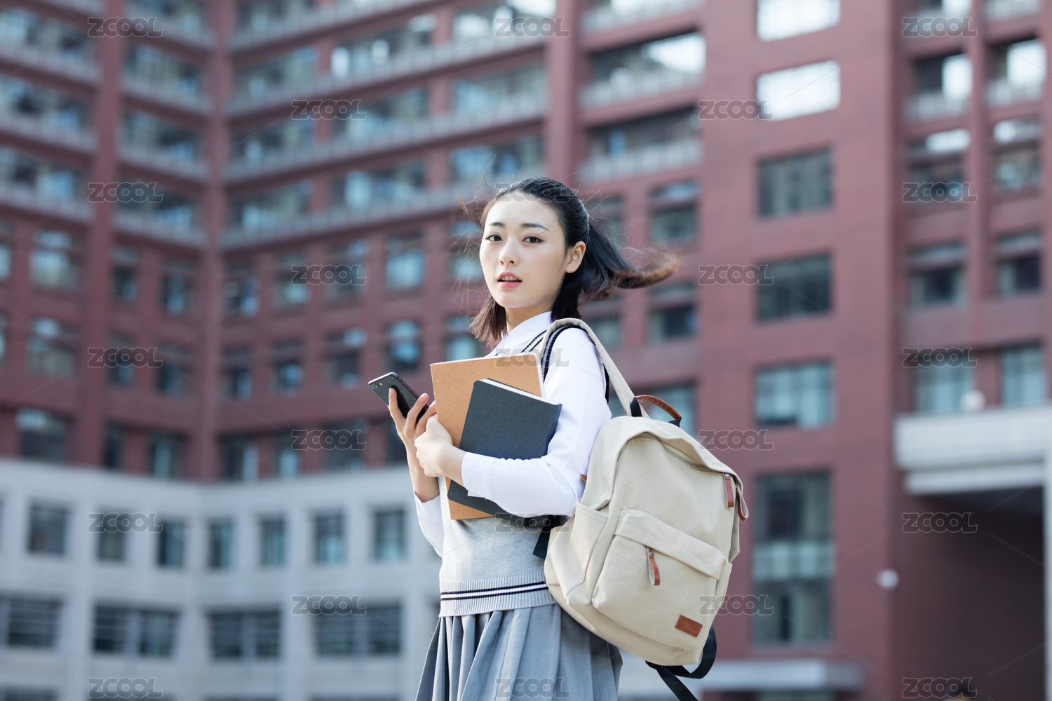 校園里背著書(shū)包快樂(lè)的女學(xué)生