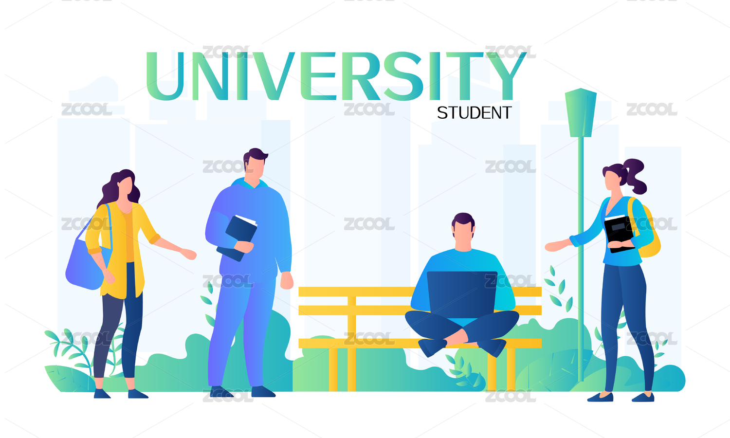 大學(xué)校園生活學(xué)生出行聚會(huì)城市矢量插畫(huà)