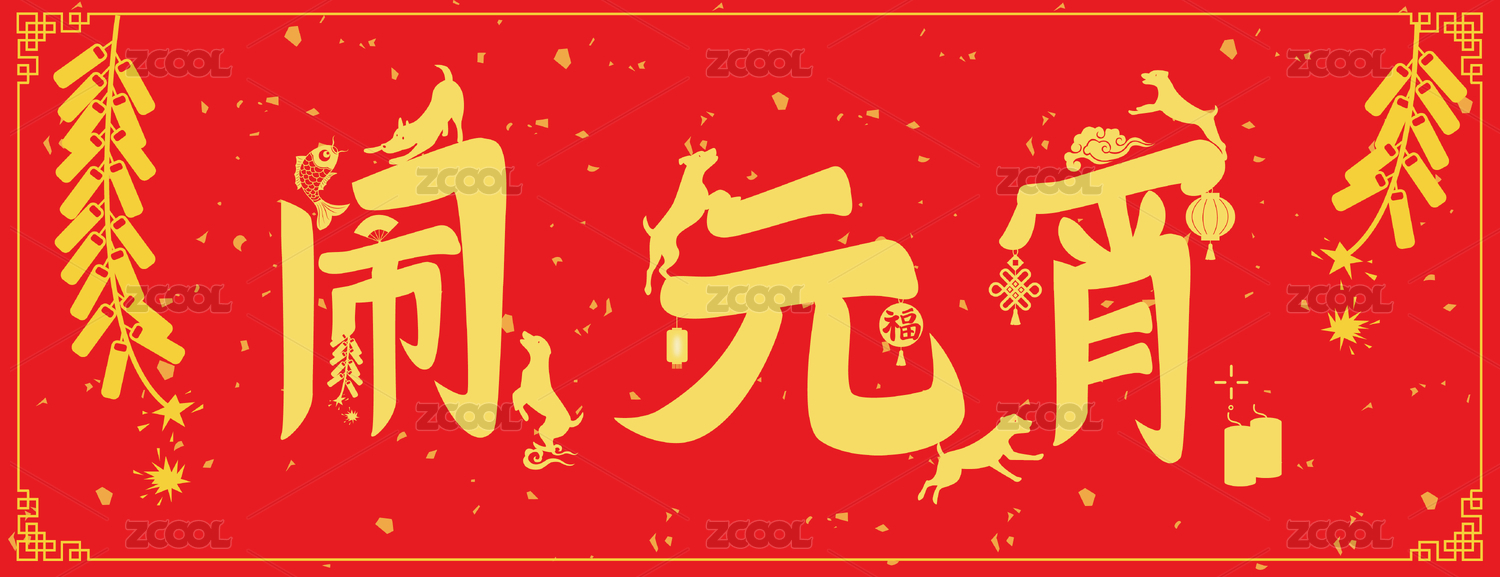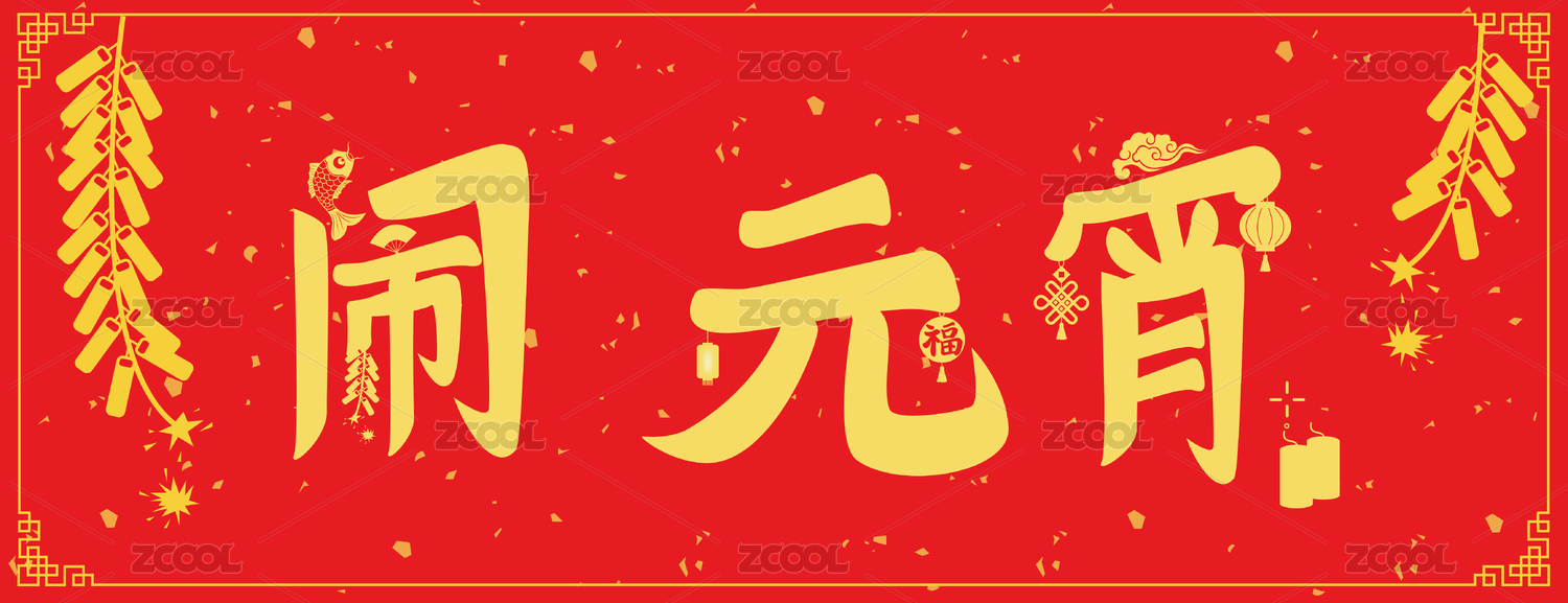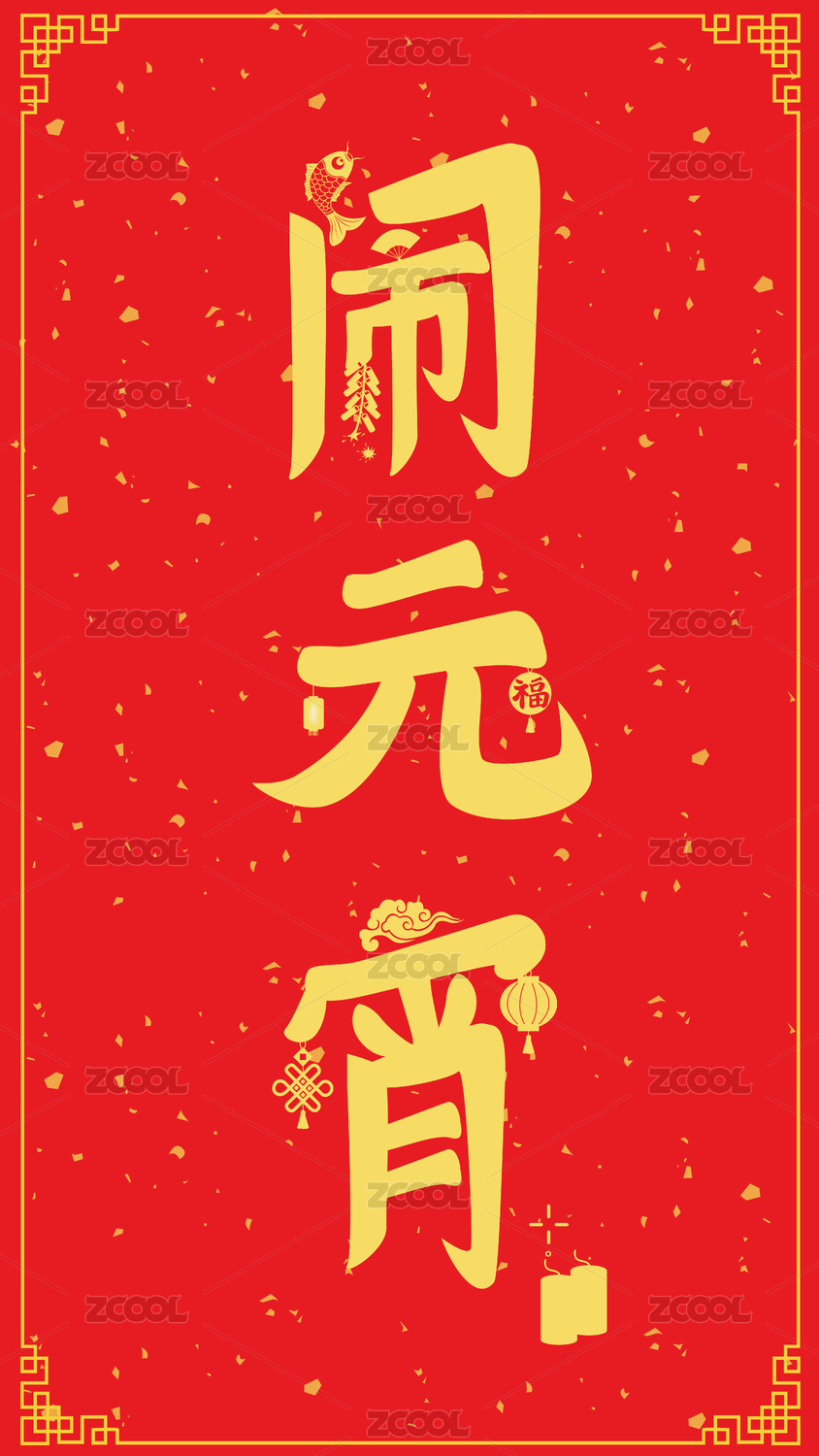鬧元宵新年書法字體燈籠煙花