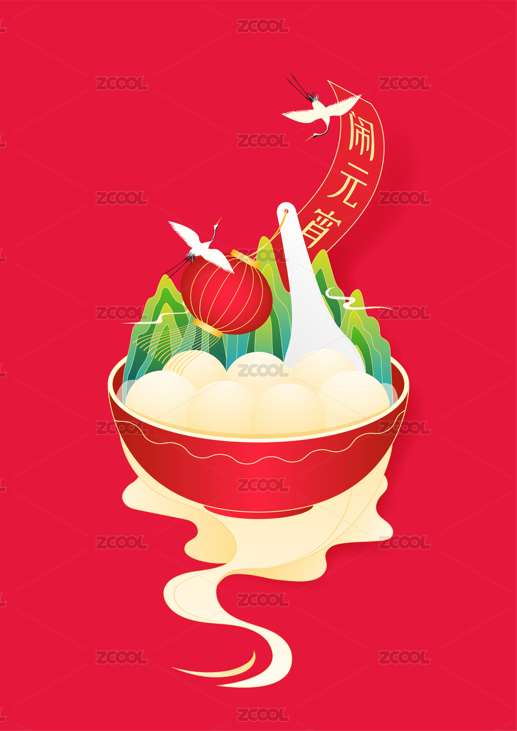 國潮云紋鬧元宵燈籠湯圓送福矢量書法字