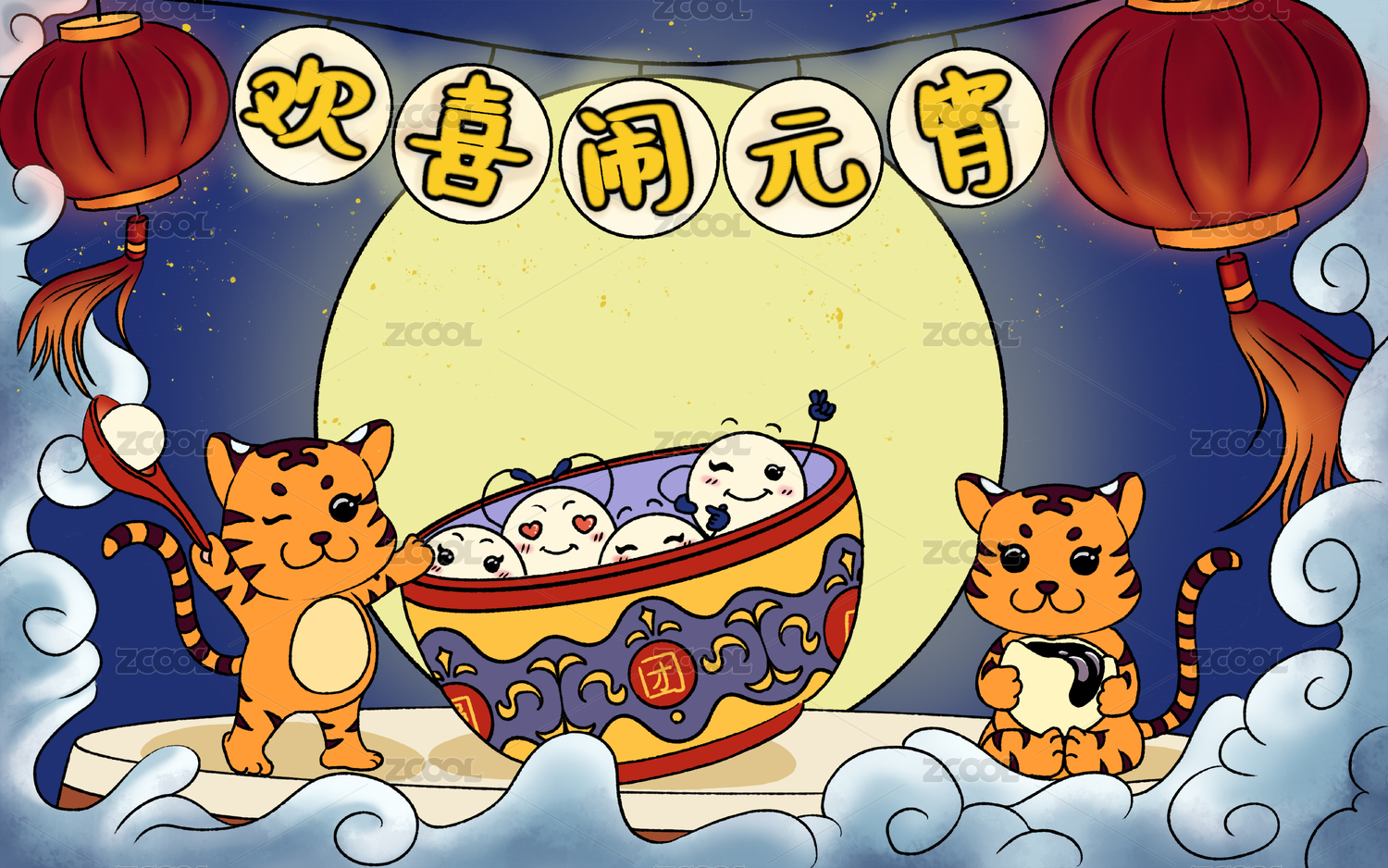 正月十五虎年鬧元宵插畫