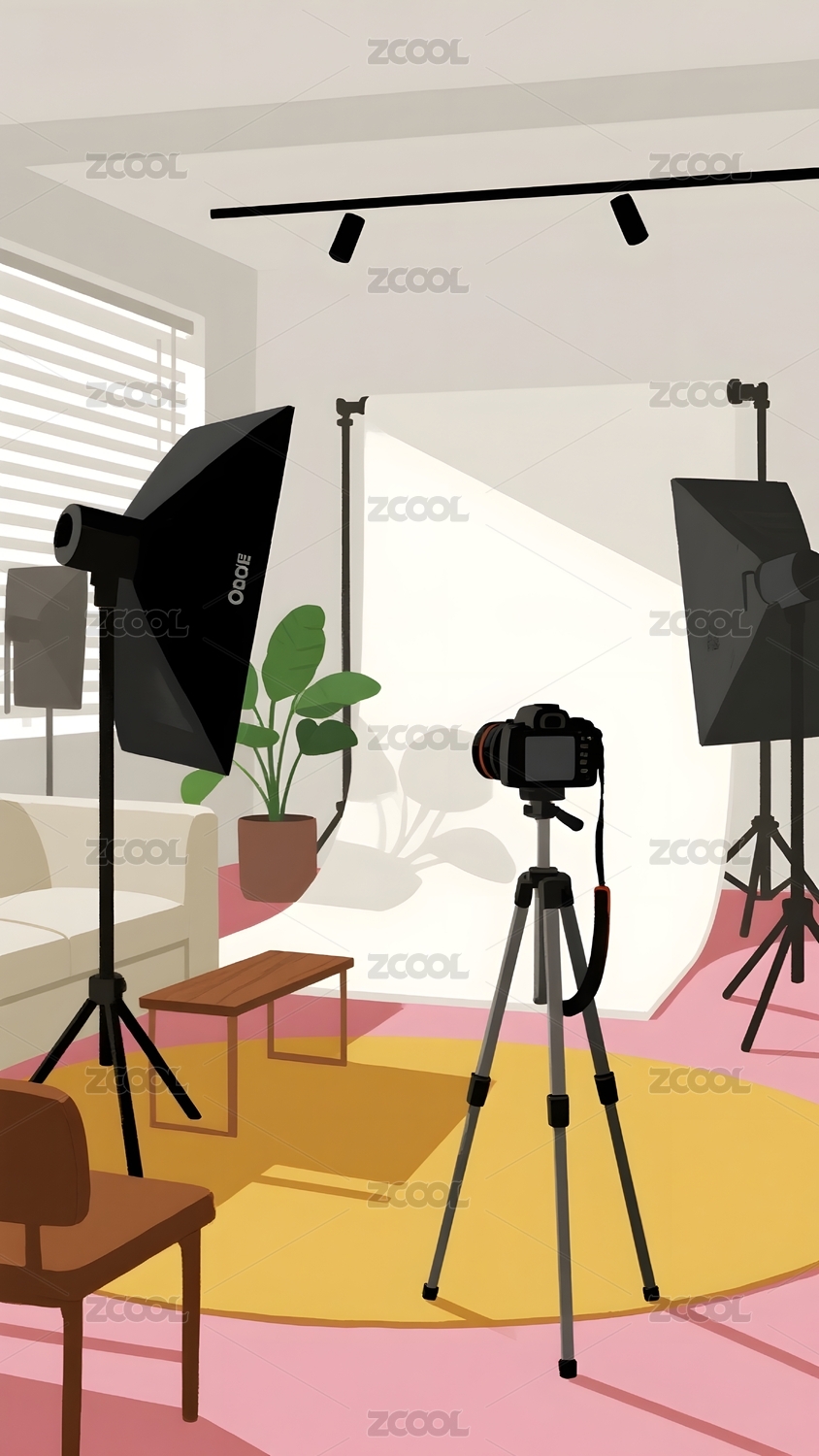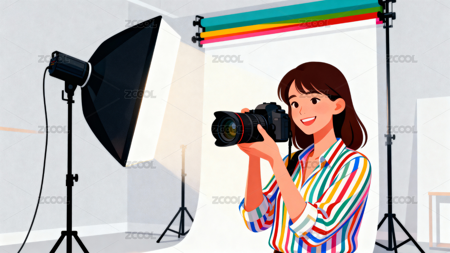 攝影師在攝影棚拍攝工作場(chǎng)景
