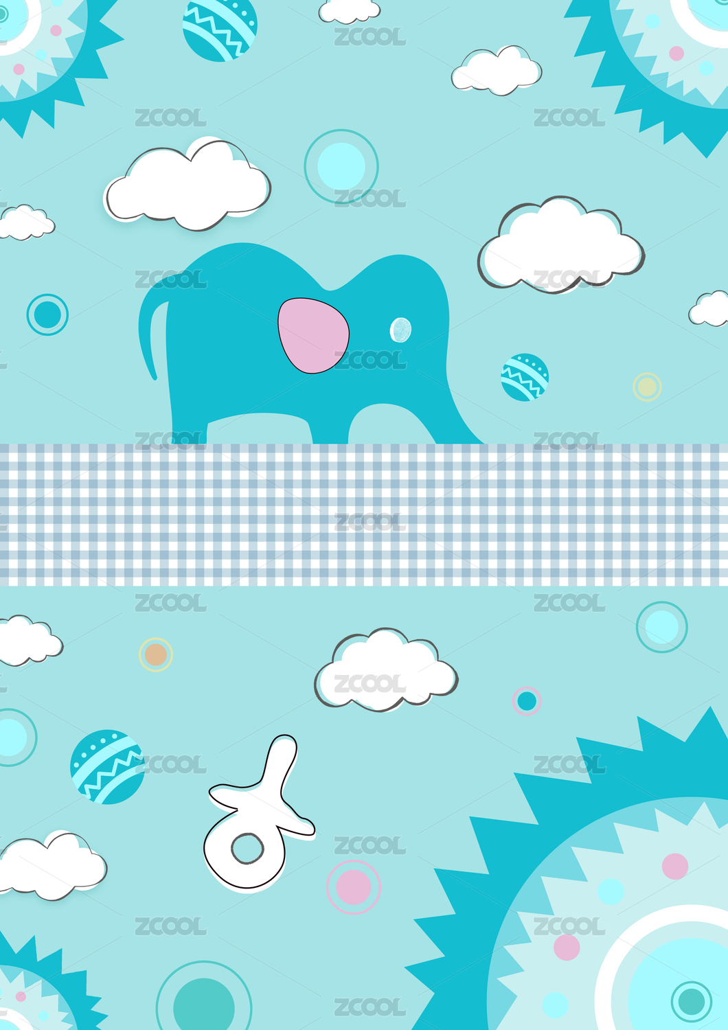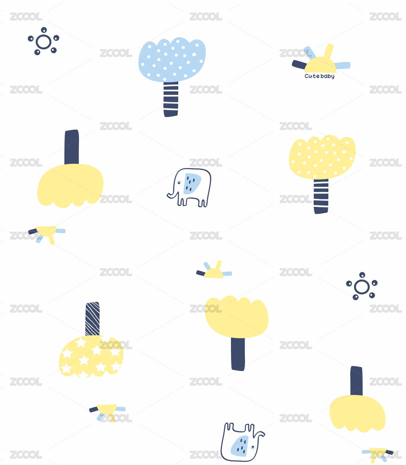 小象白云現(xiàn)代紋樣寶寶嬰童床品系列插畫