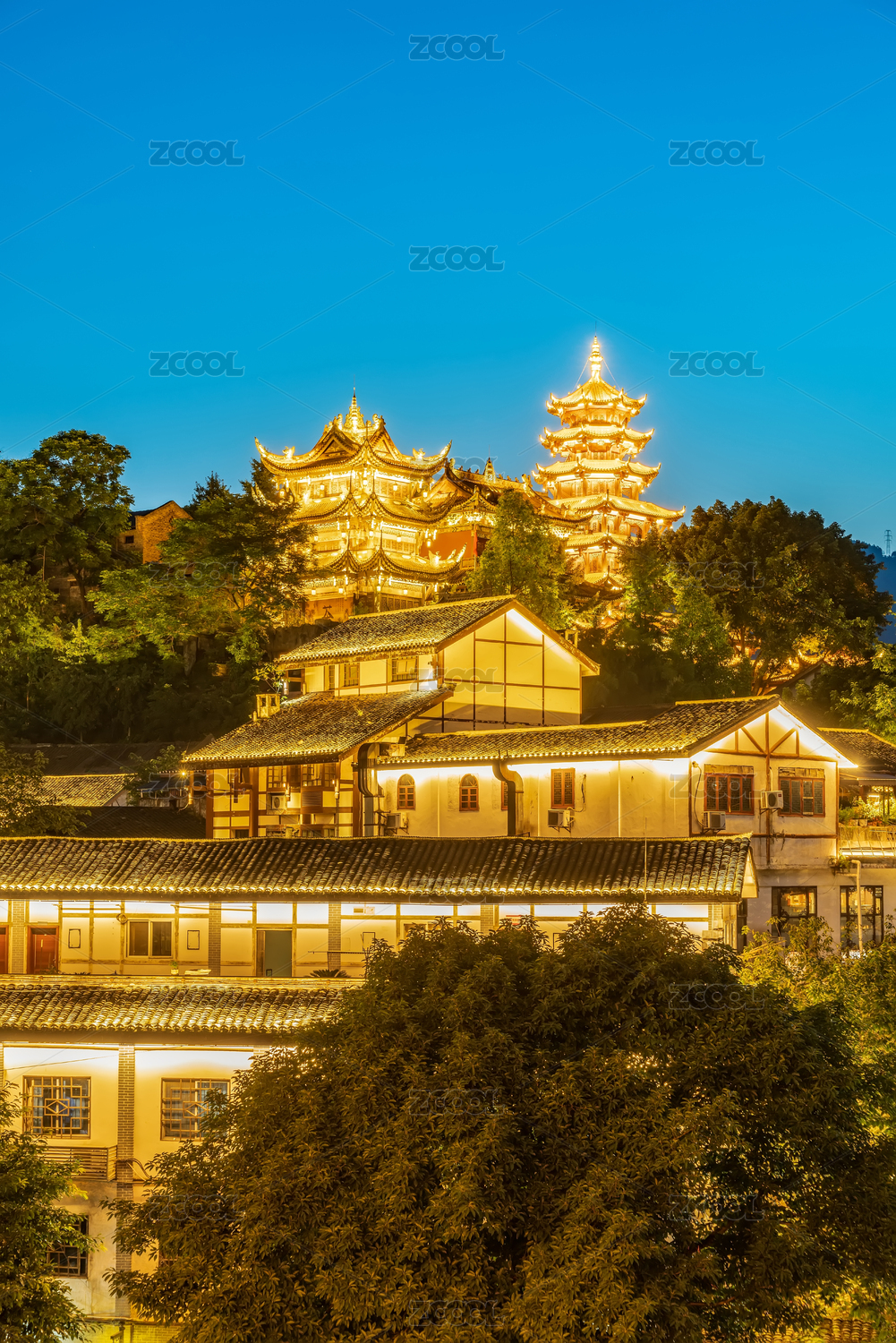 重慶磁器口古鎮(zhèn)和寶輪寺夜景