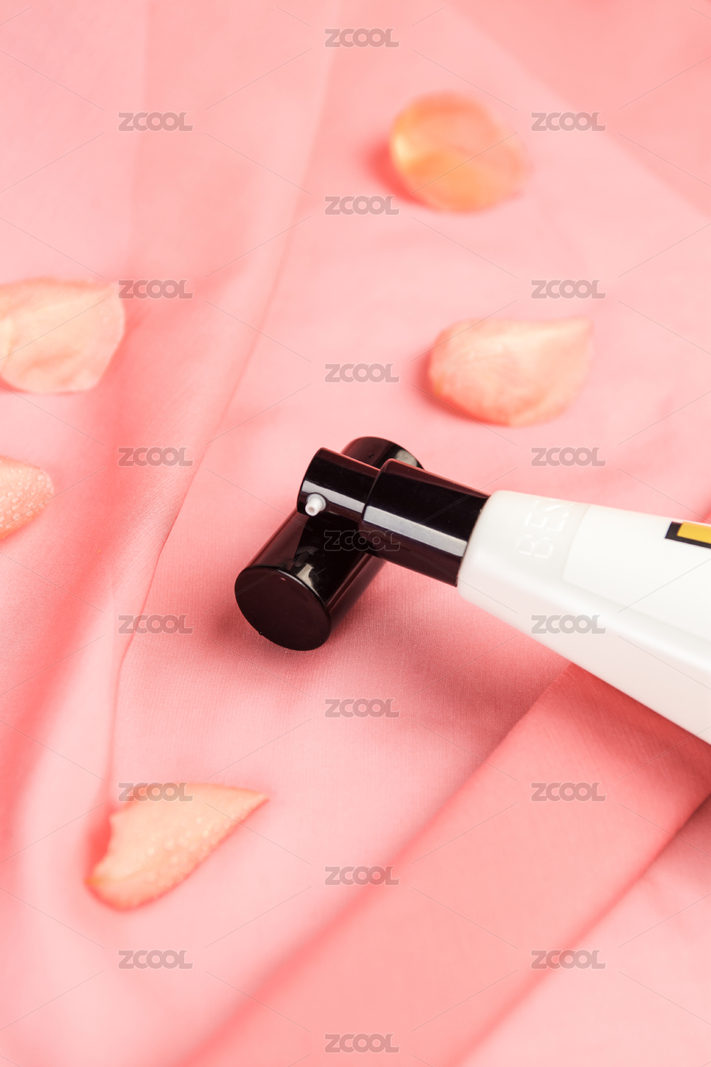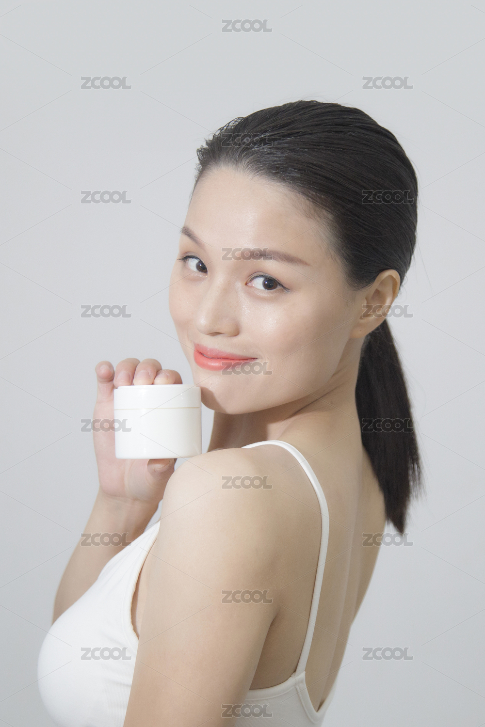 拿著護膚品空瓶子的長頭發(fā)東方女人