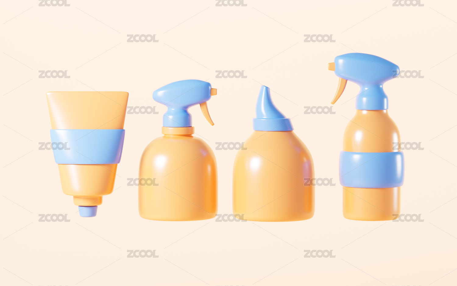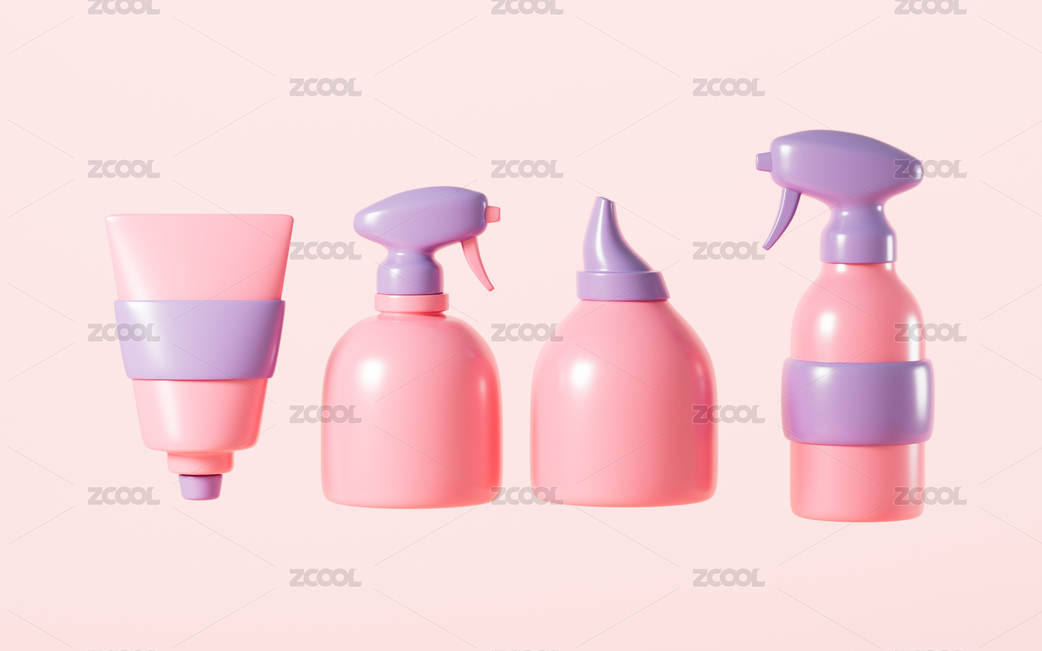 卡通洗發(fā)露護發(fā)素美容美發(fā)主題3D渲染