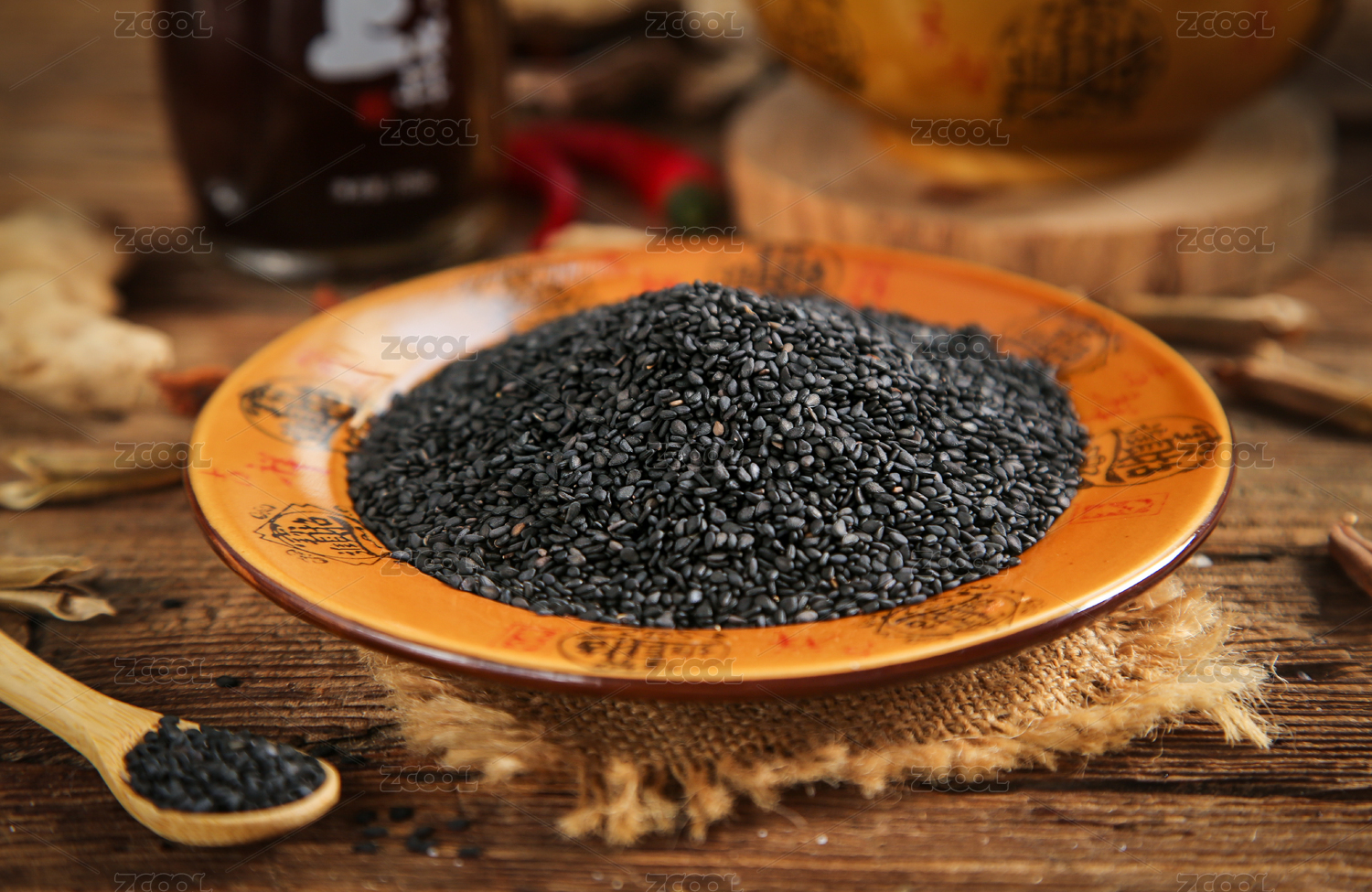 深底上放著一盤黑芝麻顆粒