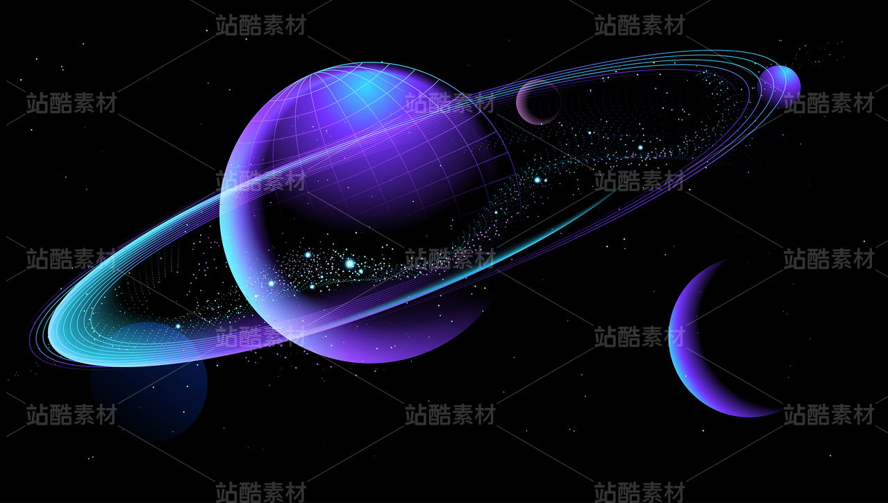 粒子行星宇宙星球藍(lán)紫色漸變黑色背景
