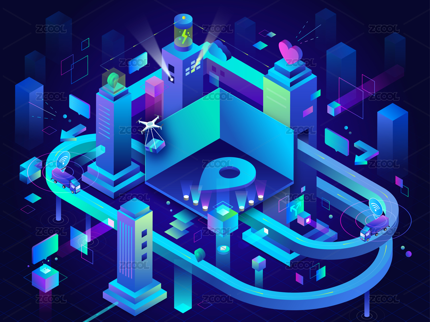 2.5D科技風(fēng)藍(lán)紫色大場景