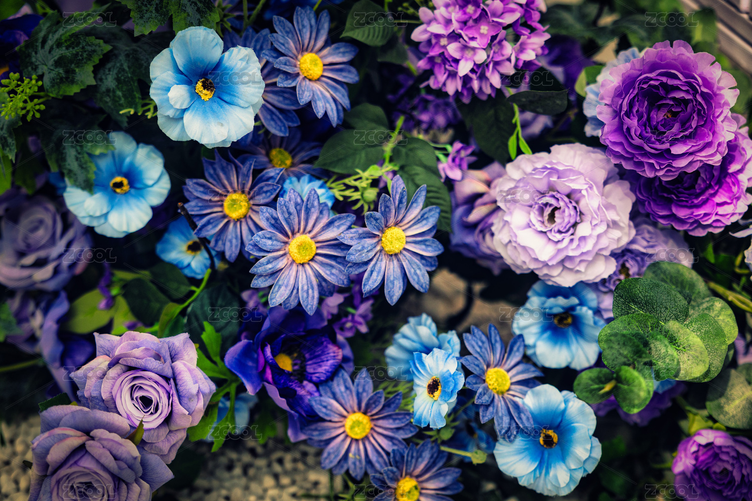 上海國際花展藍(lán)紫色花藝組合特寫