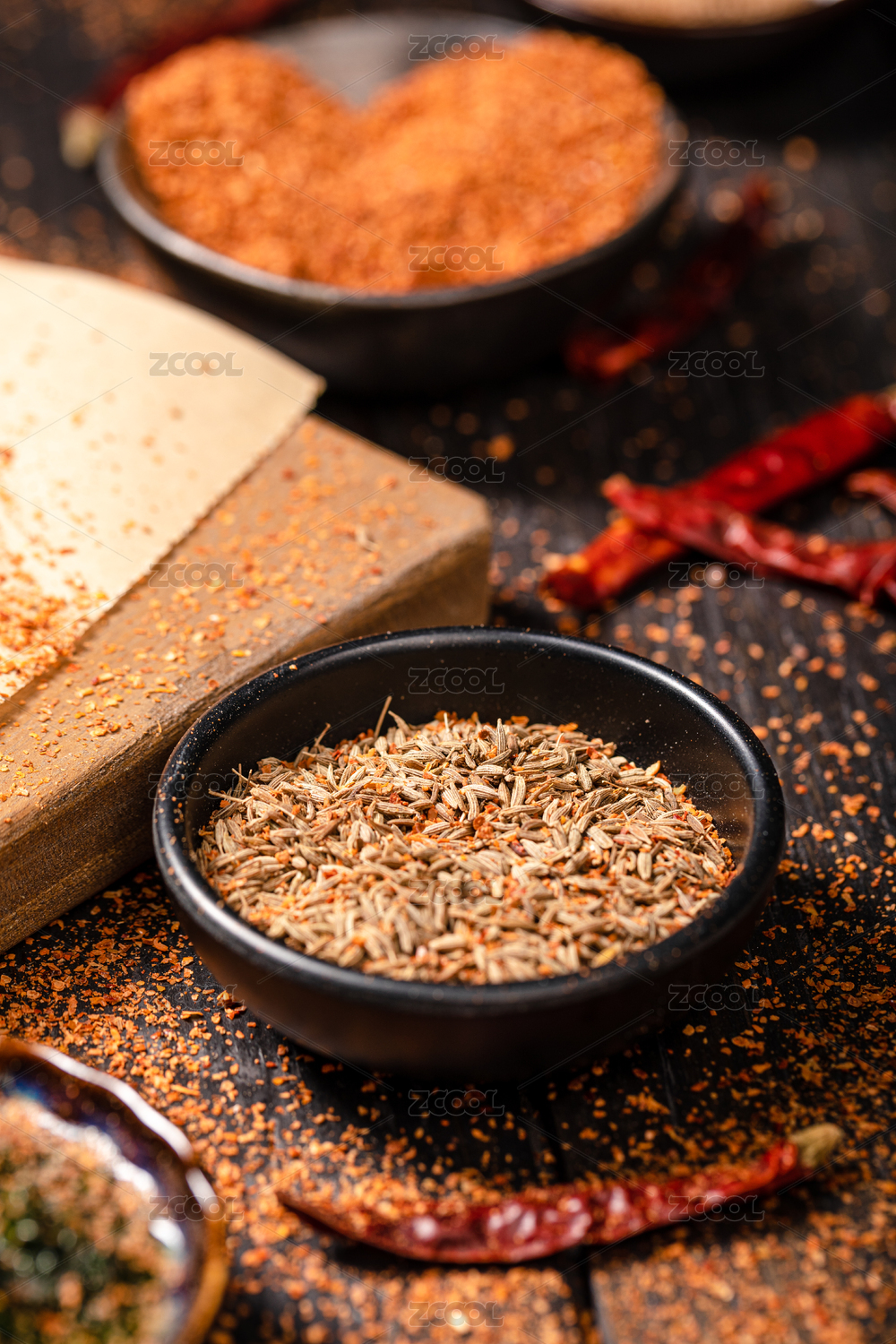 小碟子里的中式調(diào)味料孜然小茴香