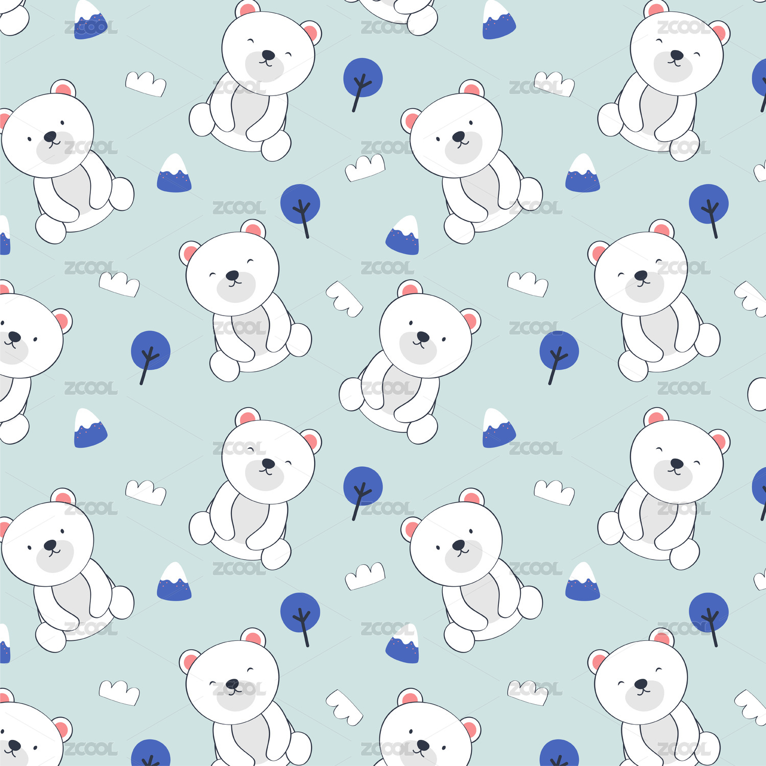 北歐風(fēng)ins清新卡通白熊幾何印花無縫背景