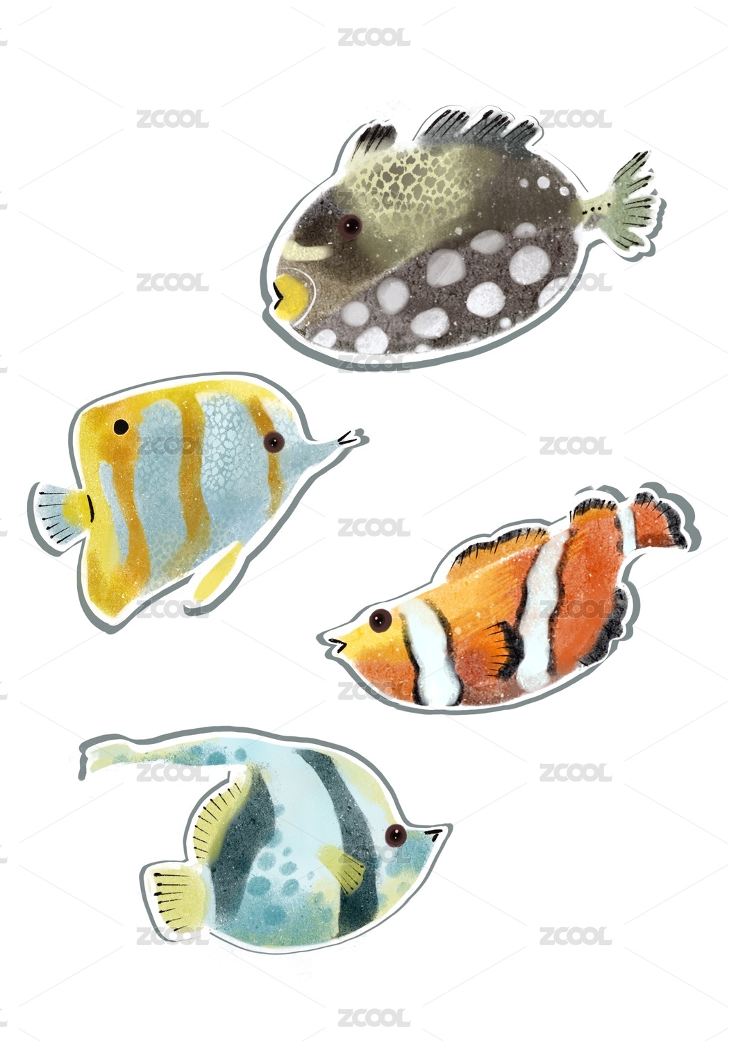海洋生物自然園藝元素素材肌理森系裝飾插畫