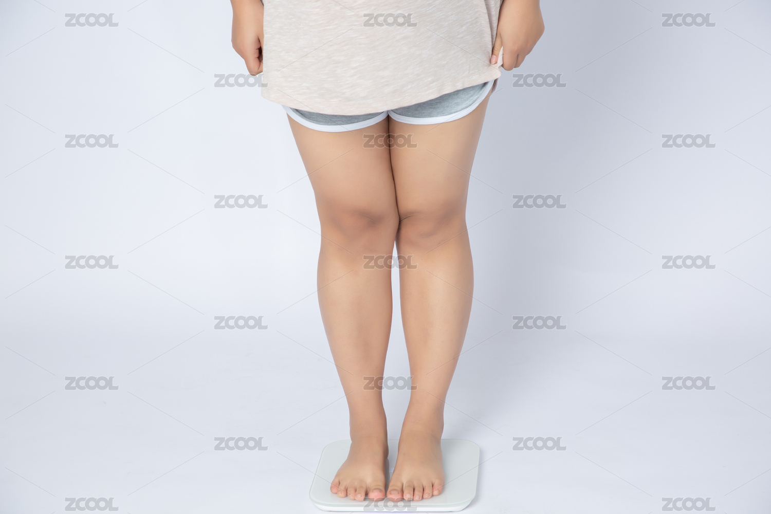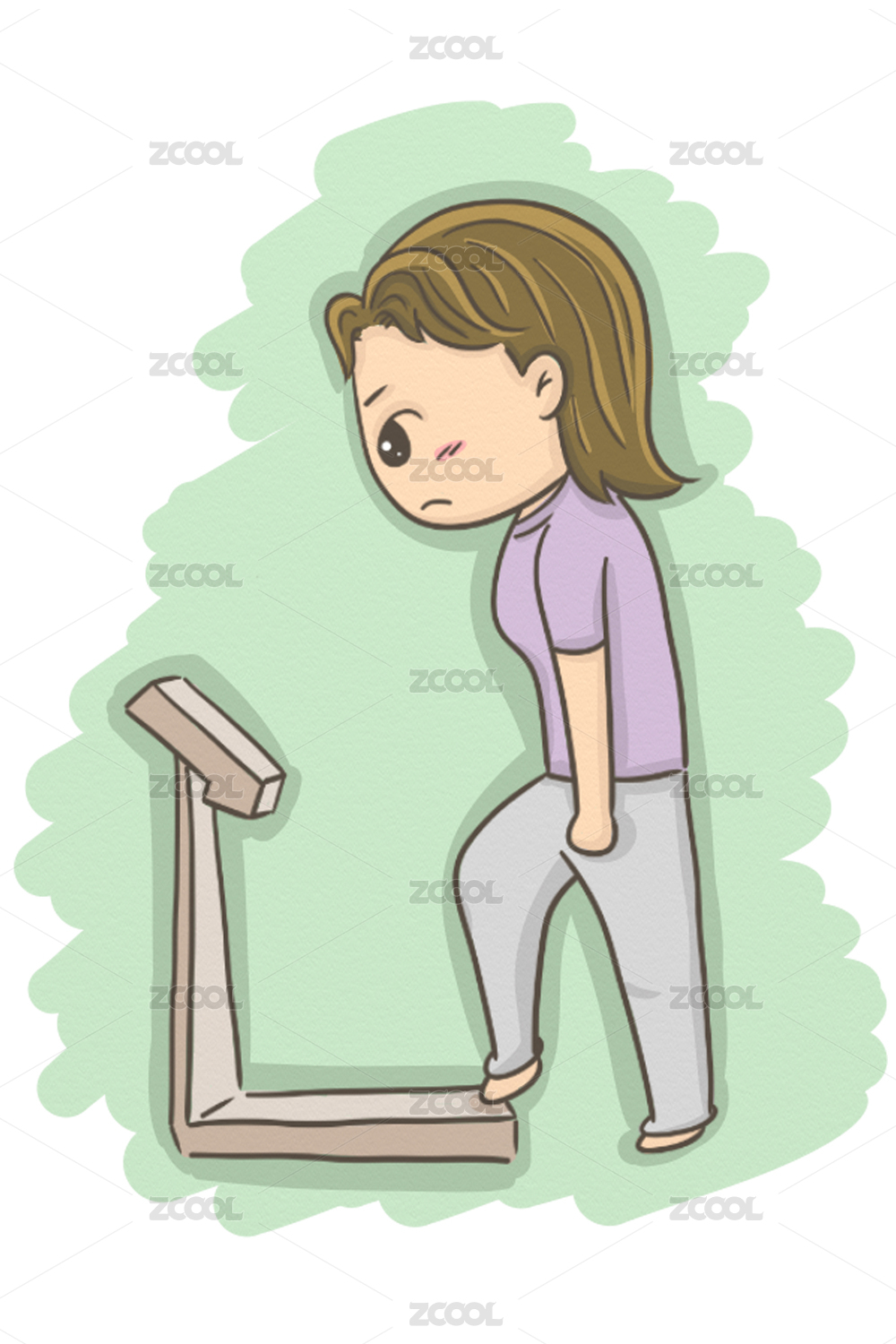 卡通插圖瘦身減肥雙腳站在體重秤上