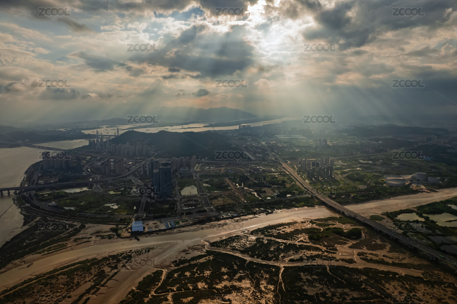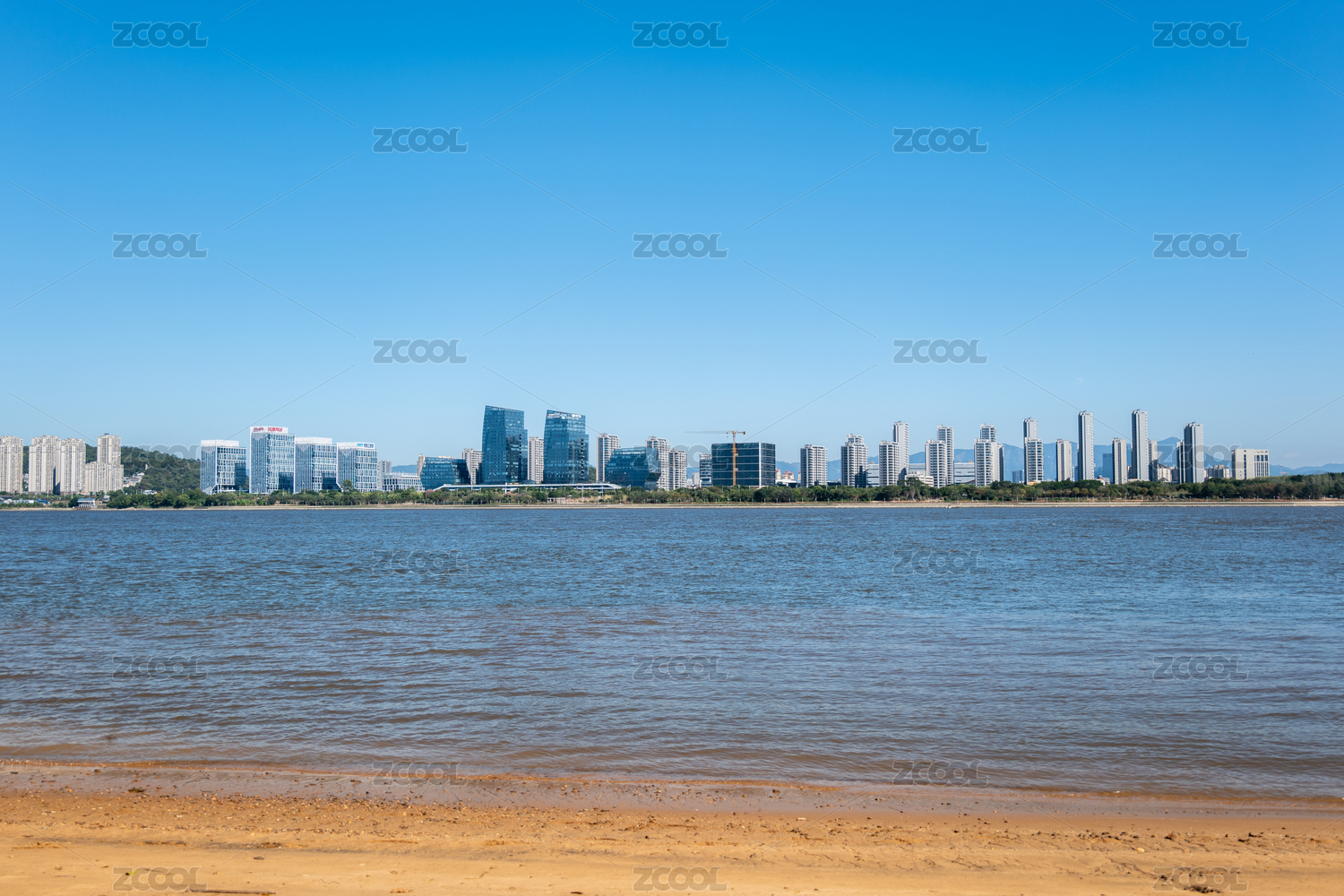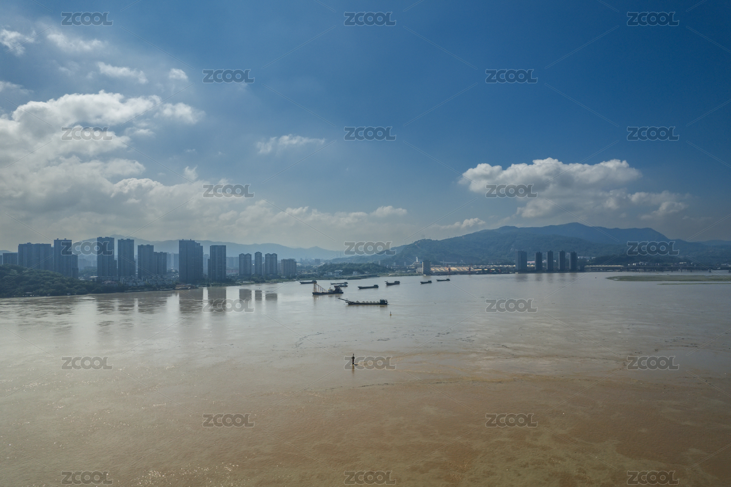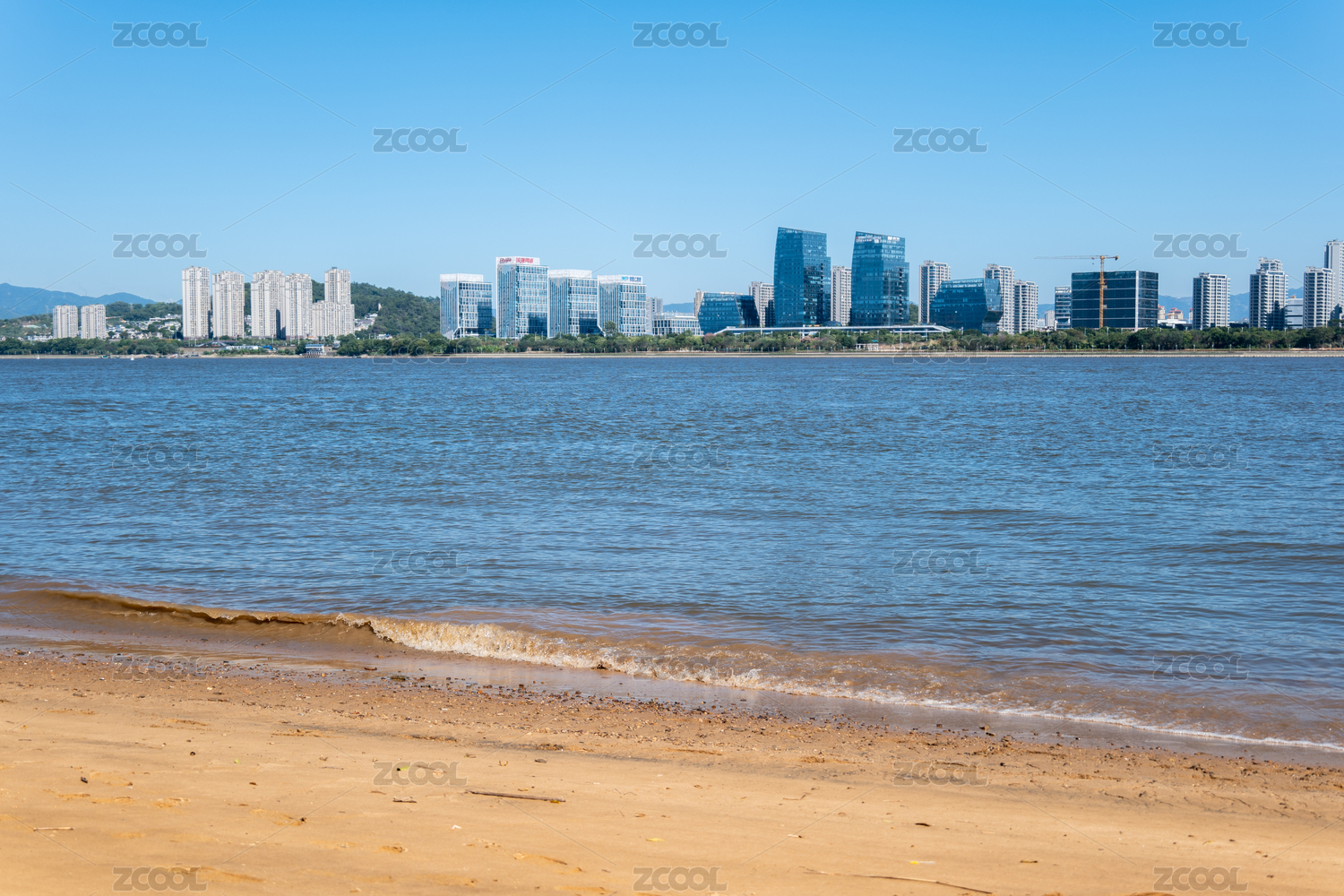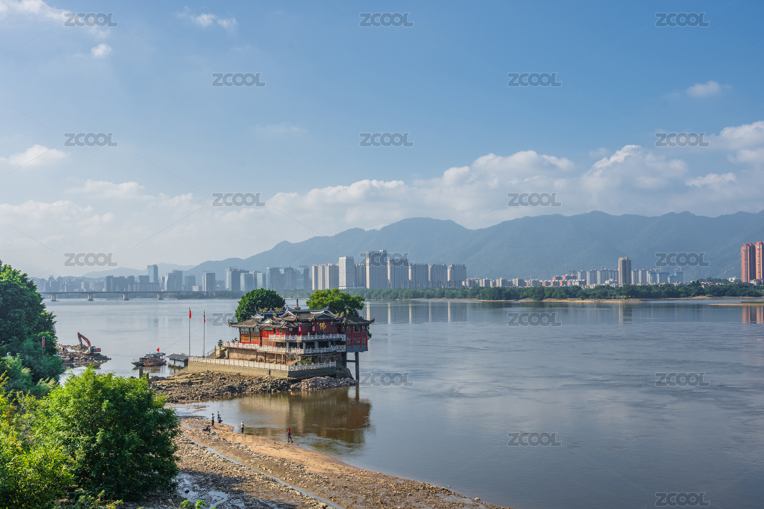 福州閩江的水面沙灘與現(xiàn)代化城市建筑發(fā)展