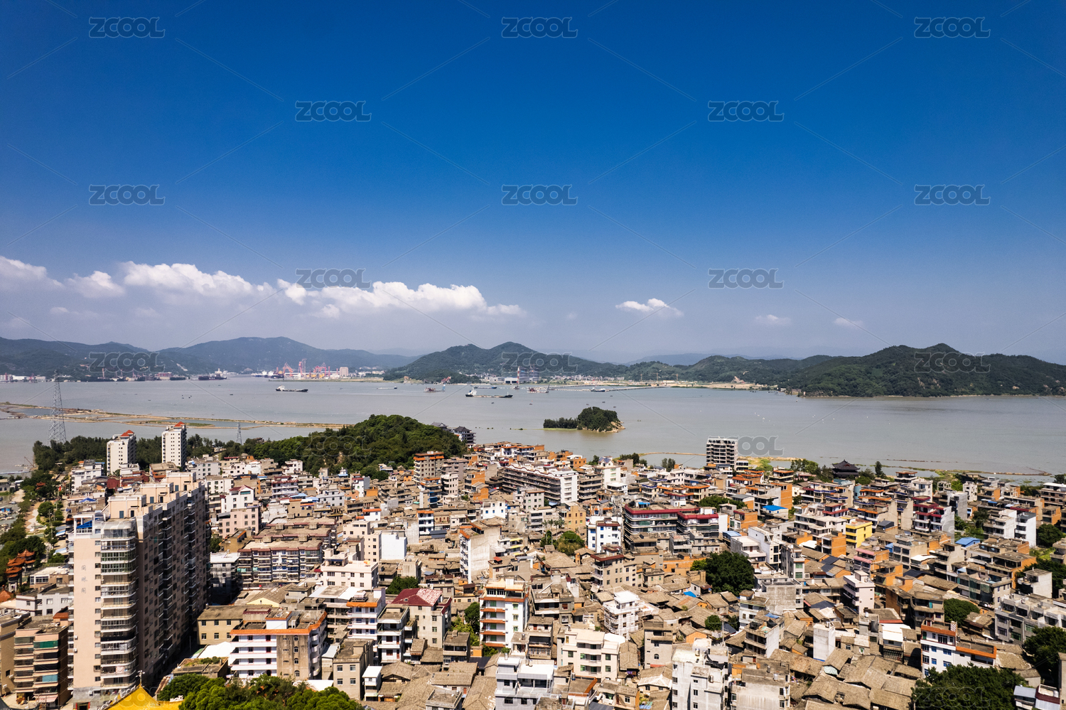 航拍福州閩江入??诘某擎?zhèn)海島風(fēng)景