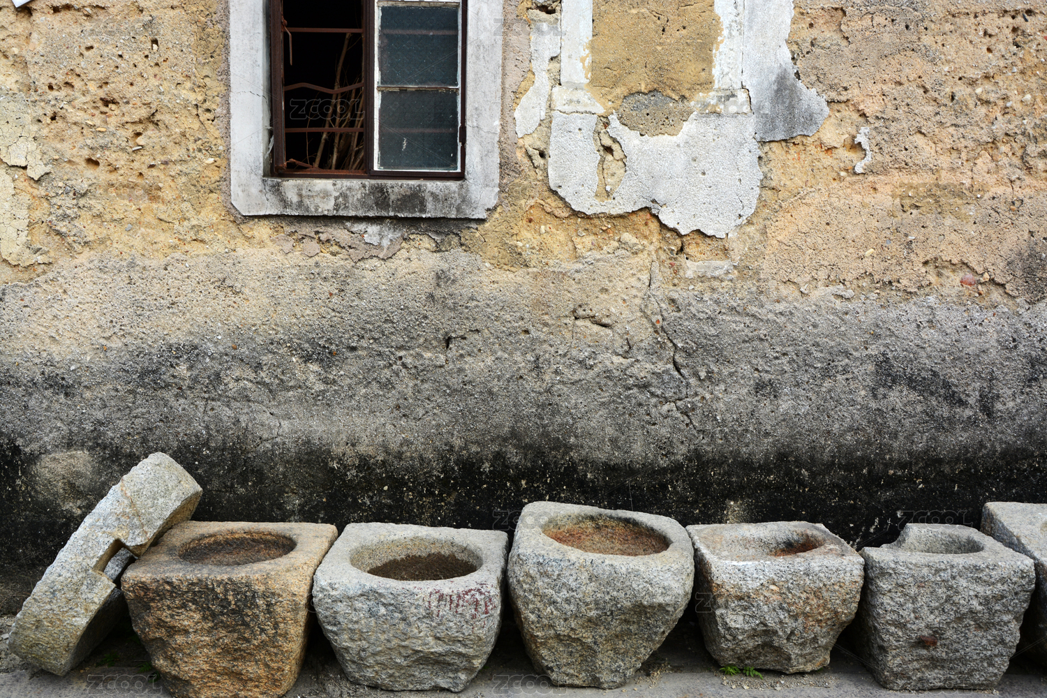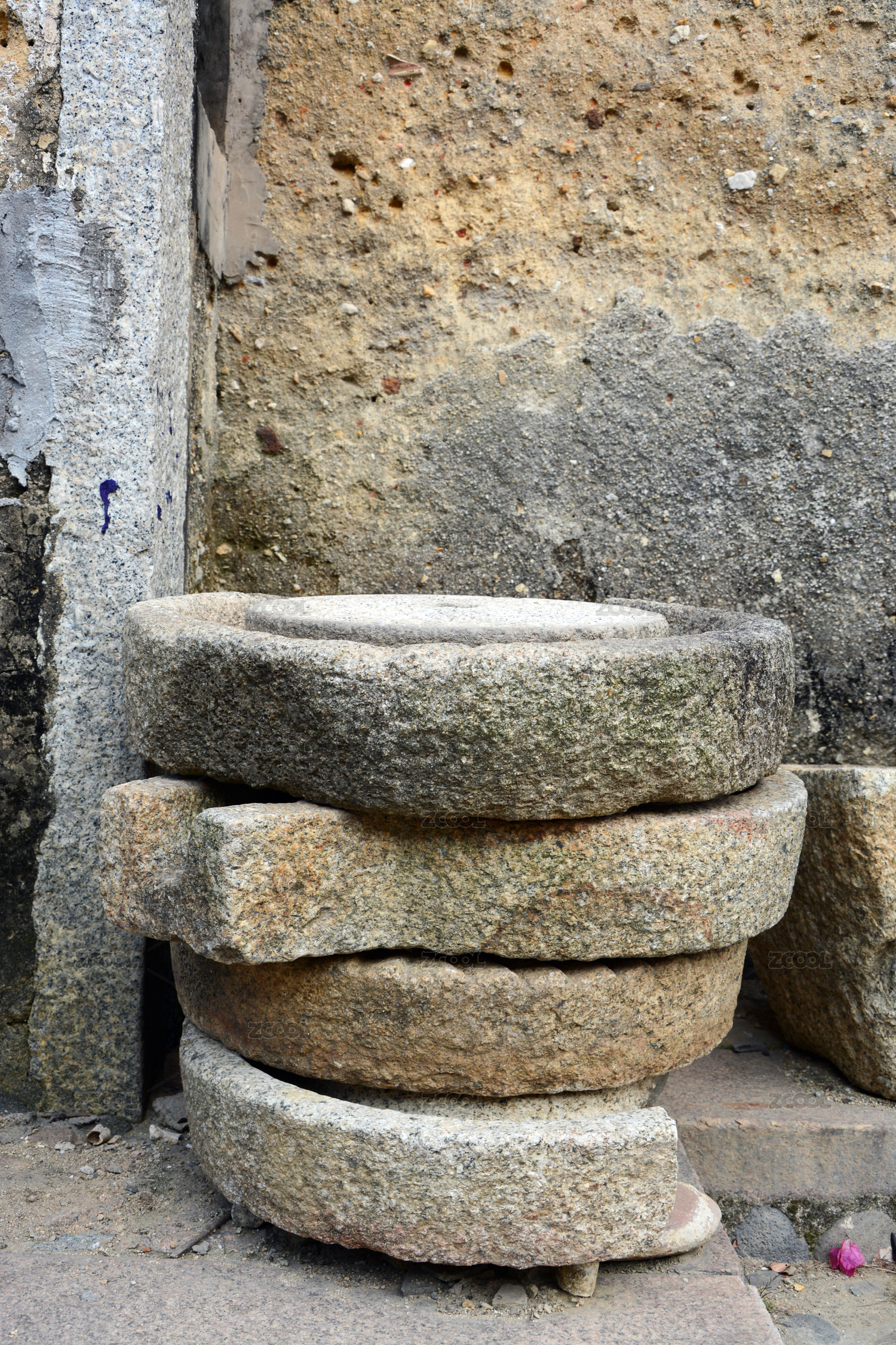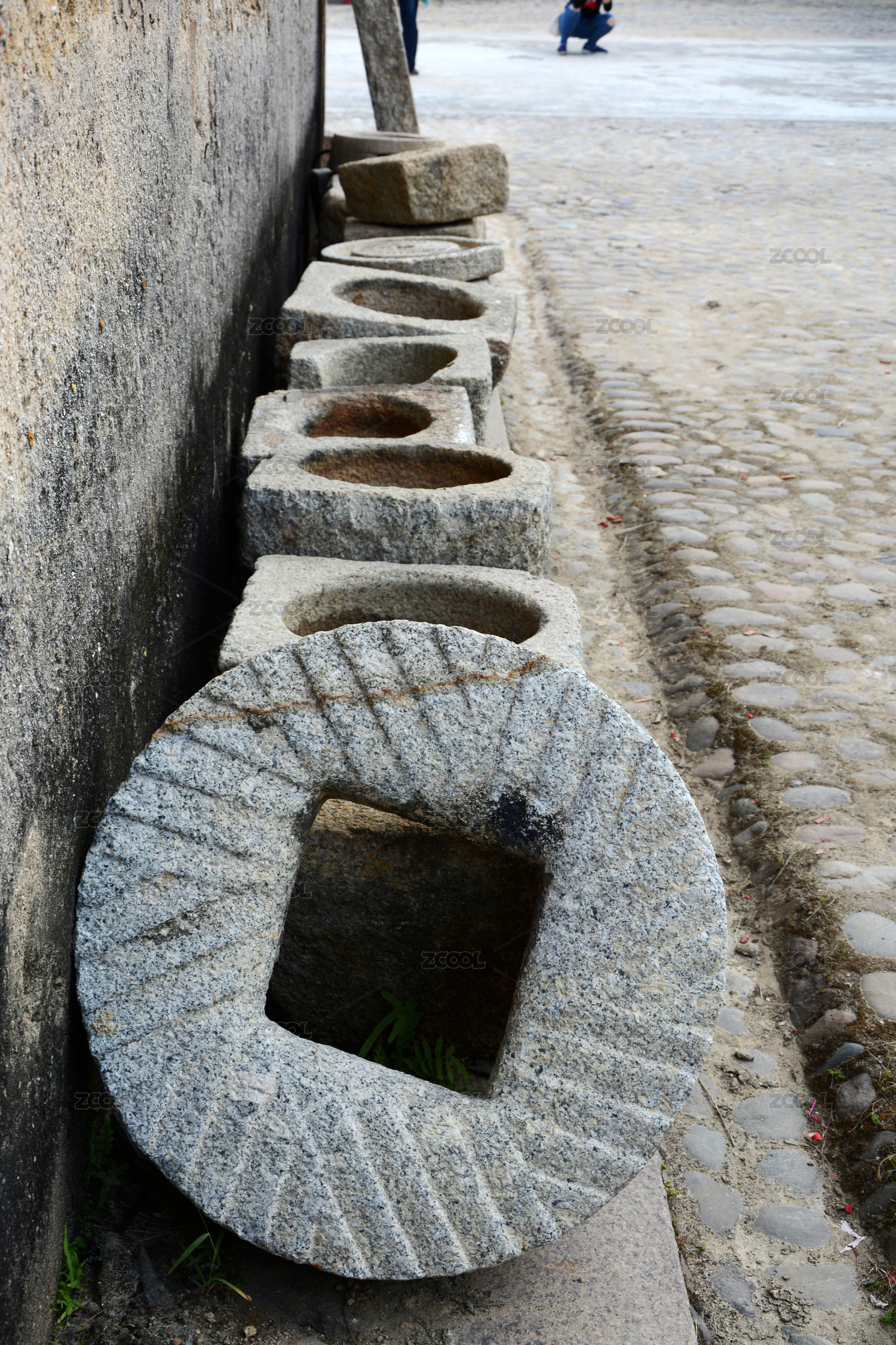 靠墻擺放的傳統(tǒng)石制物件