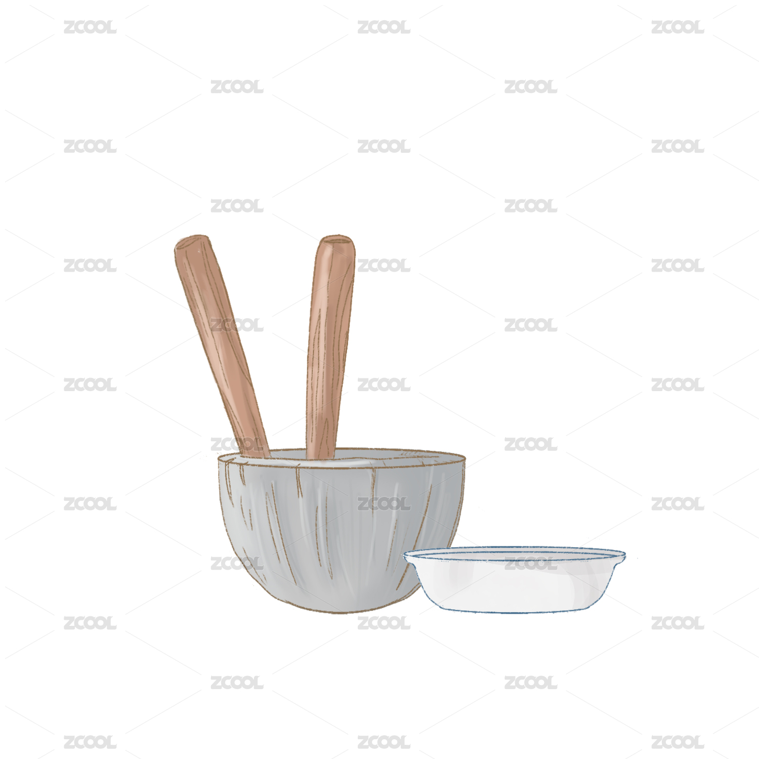 打糍粑舂米工具卡通手繪插畫素材