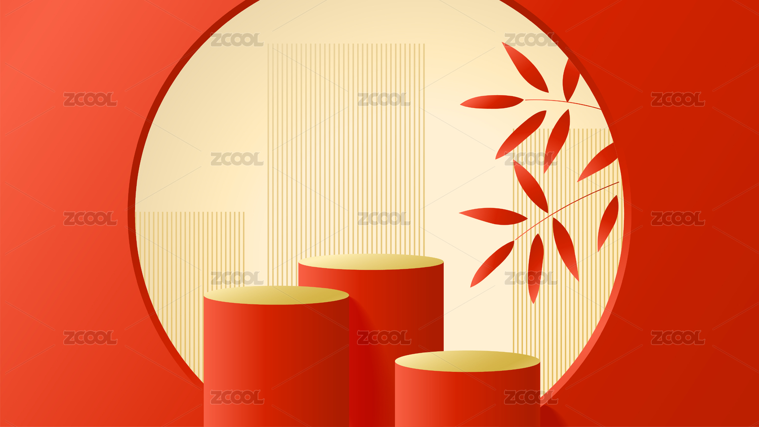 紅金配色幾何擺臺(tái)陳列場(chǎng)景
