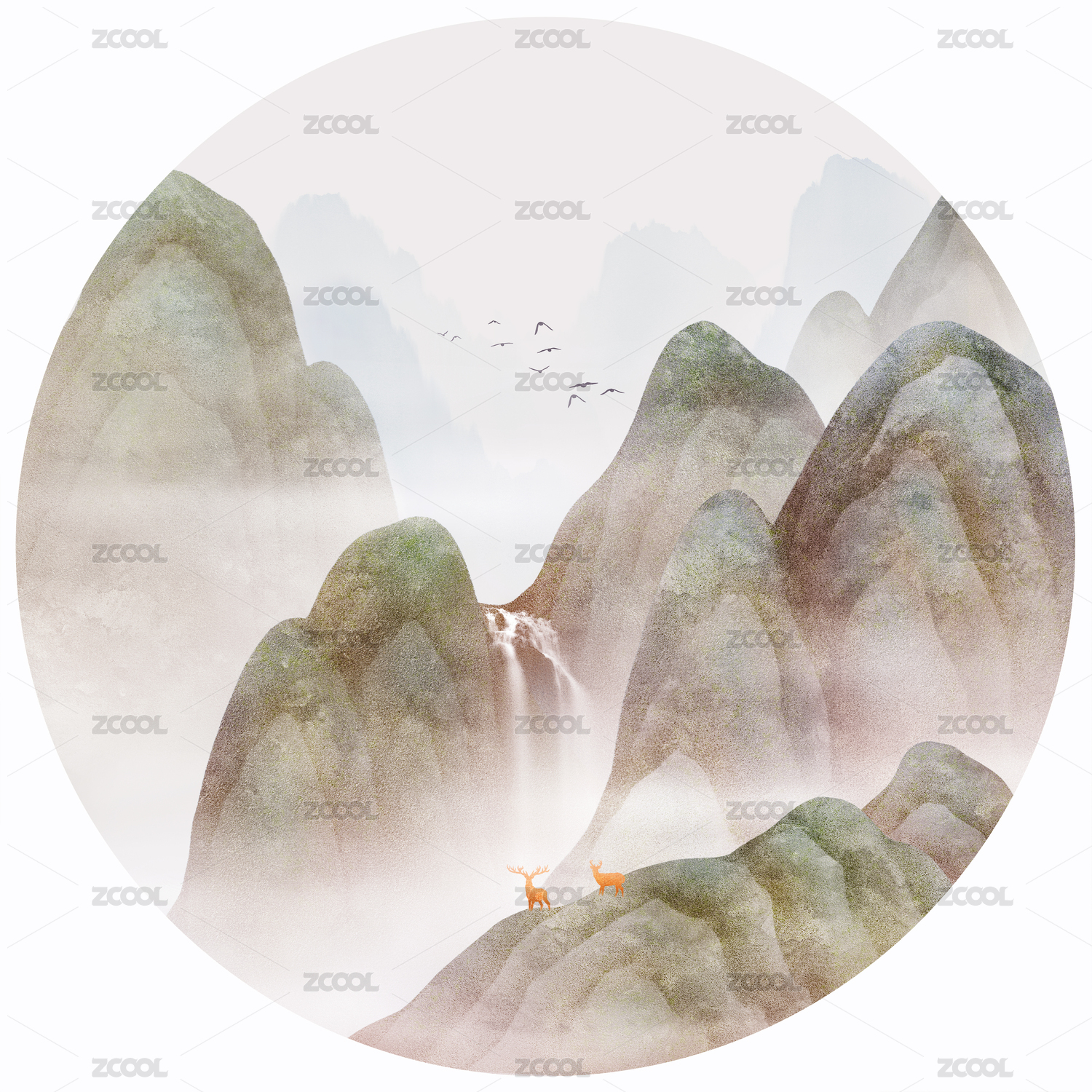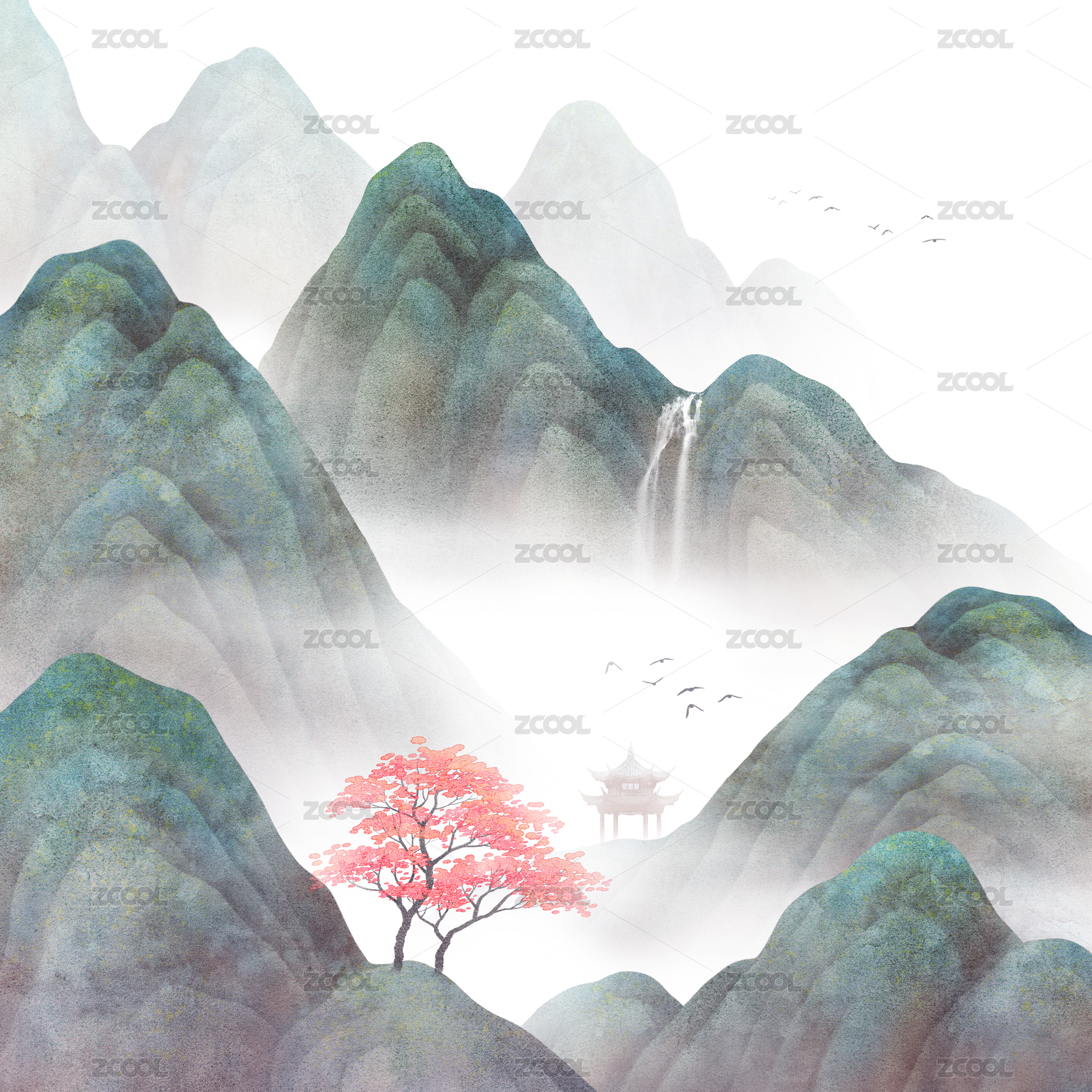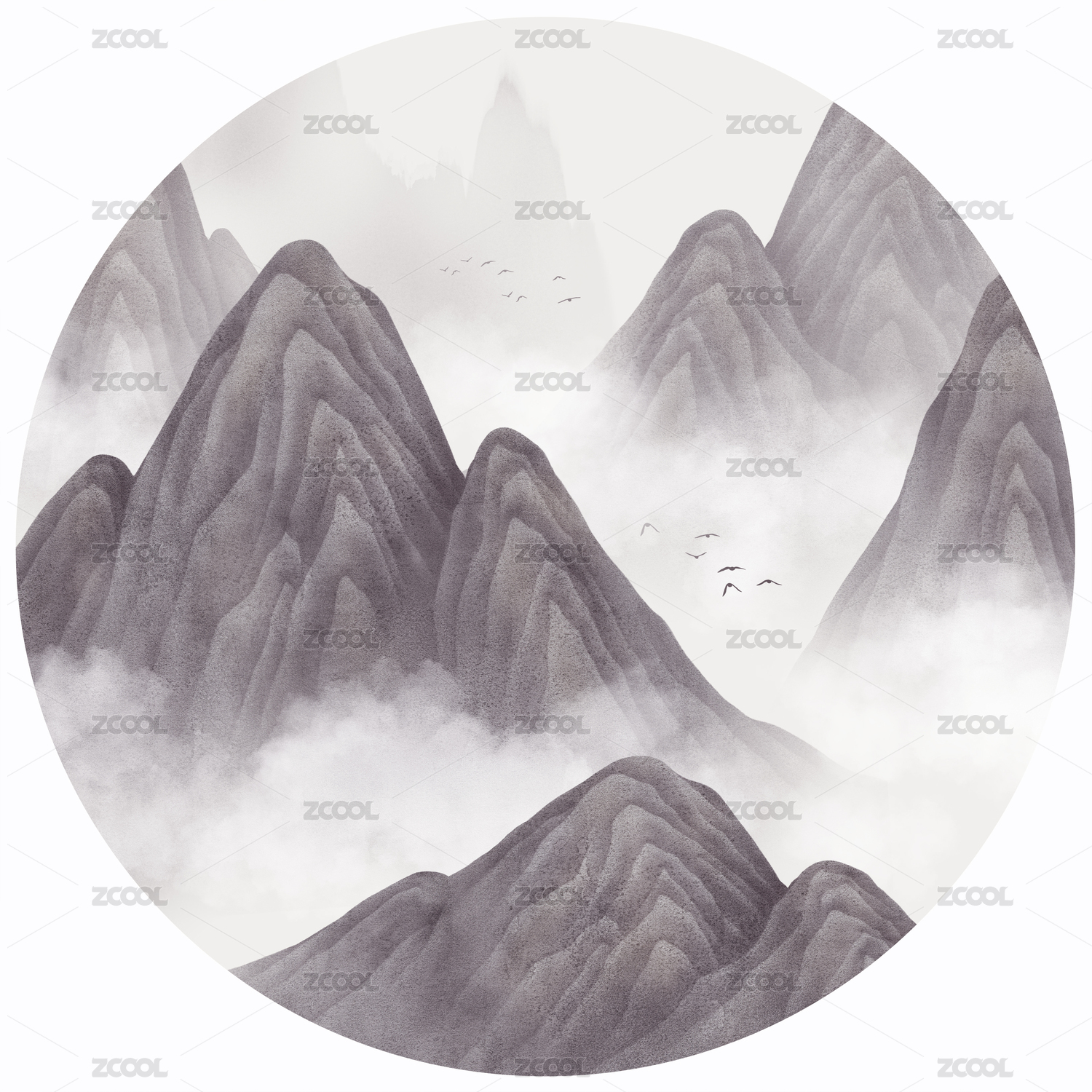 中國風(fēng)山水云紋與仙鶴