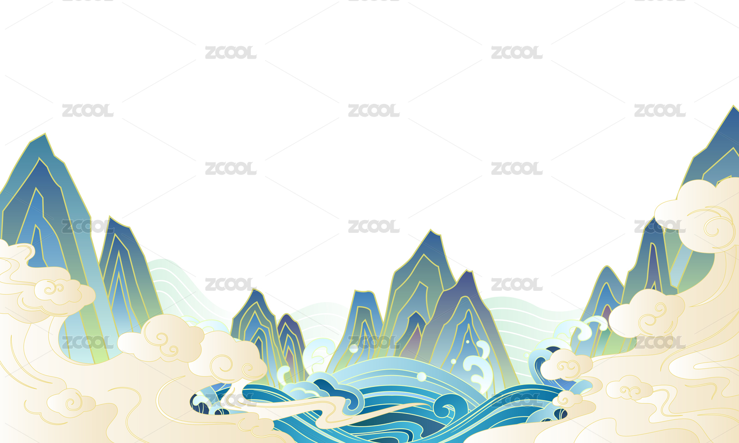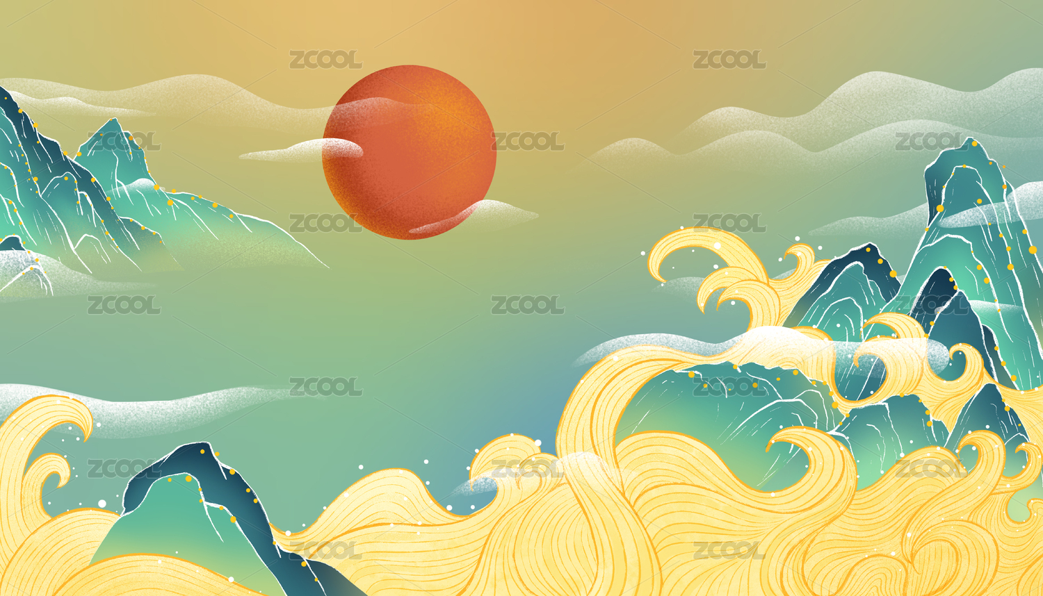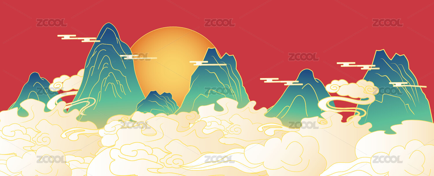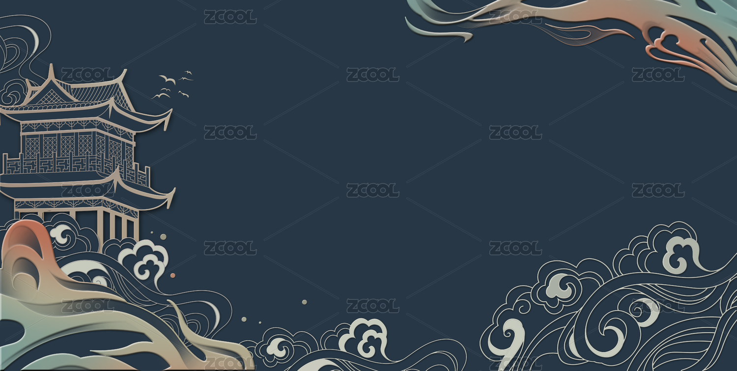 中國風(fēng)山水云紋背景插畫