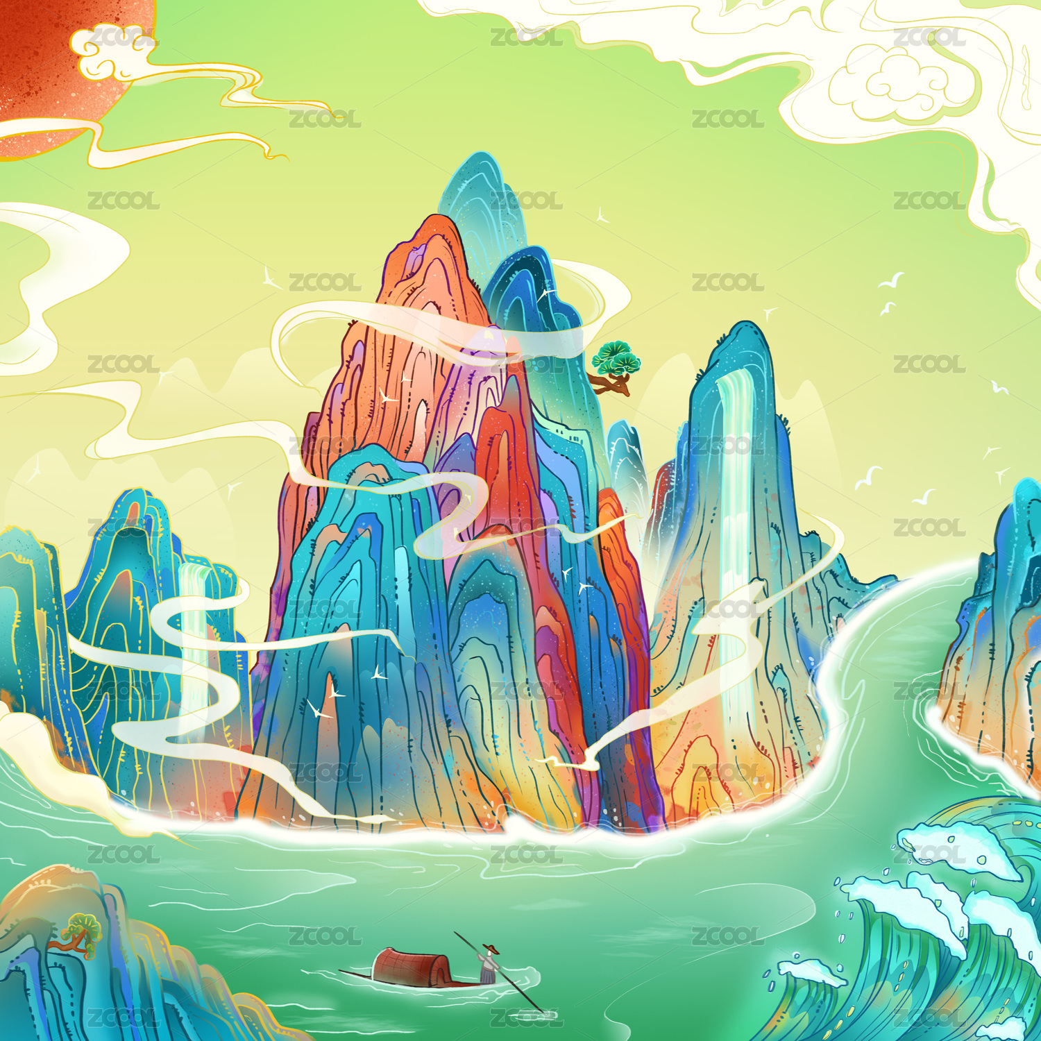 中國風(fēng)山水風(fēng)景插畫14