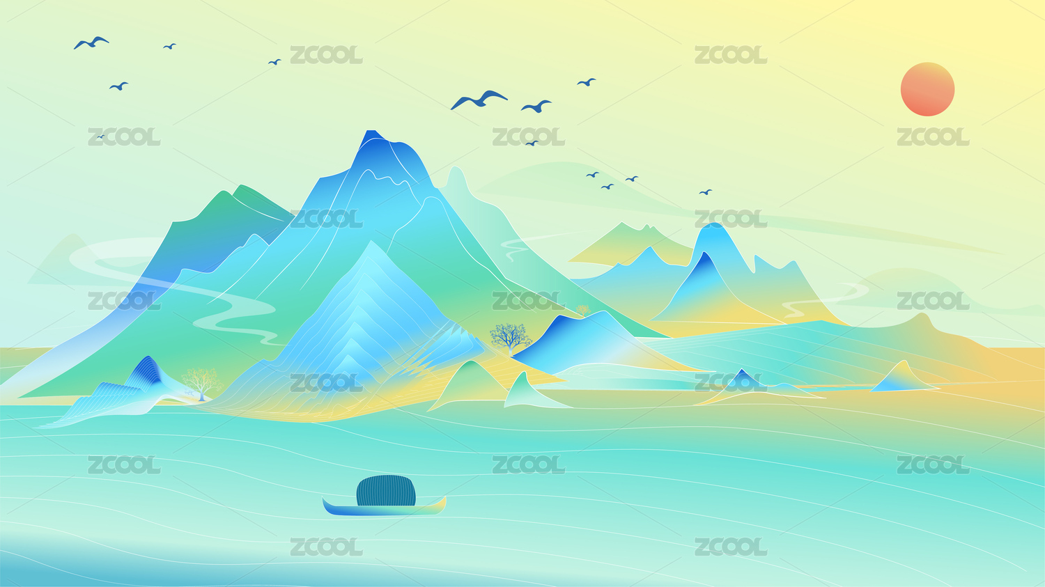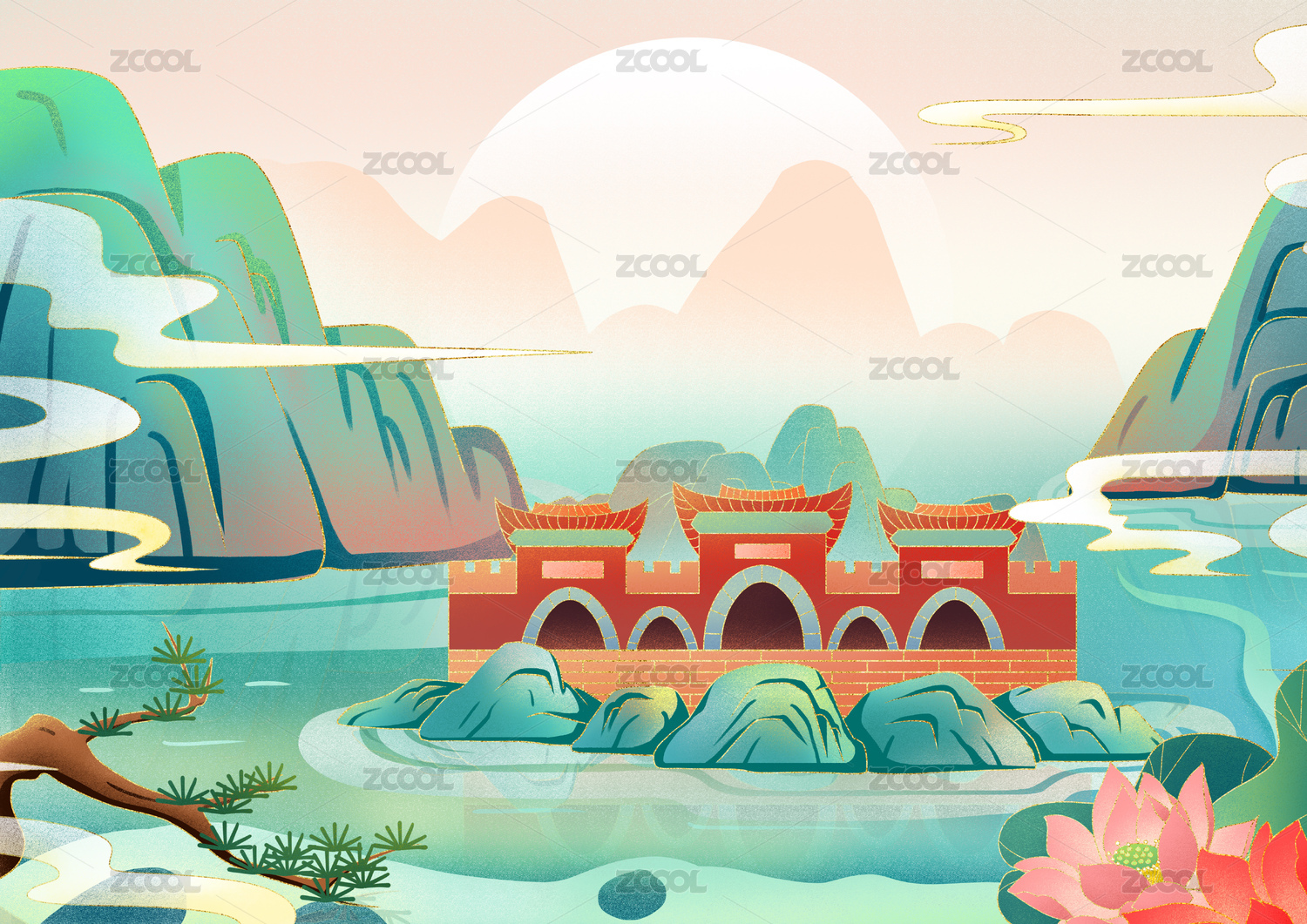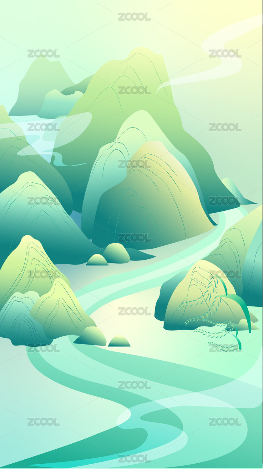 中國風(fēng)山水風(fēng)景插畫15