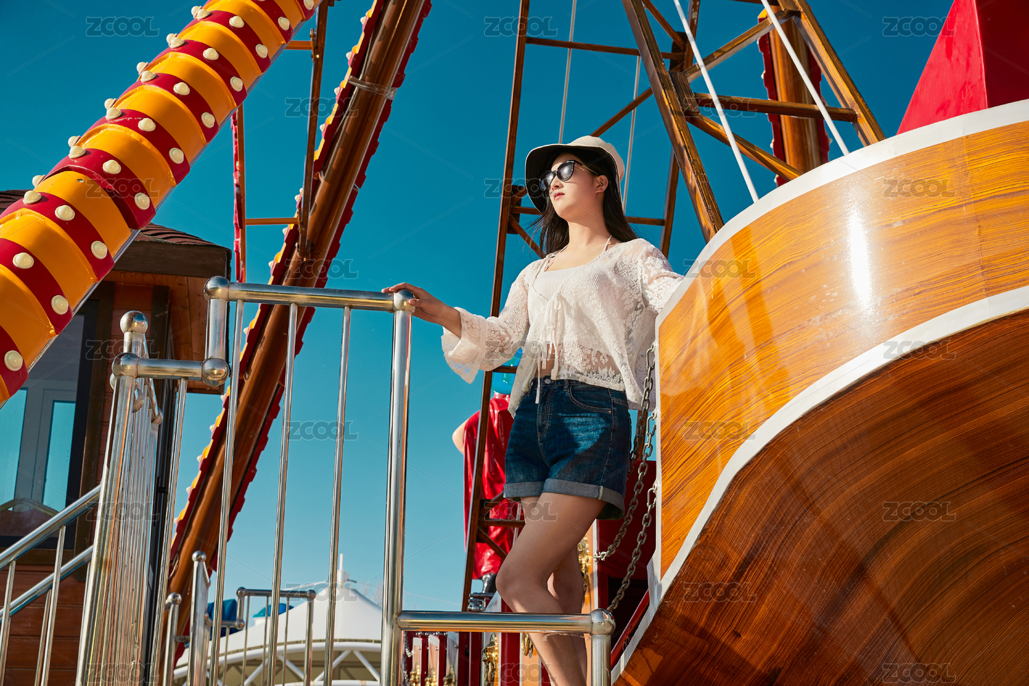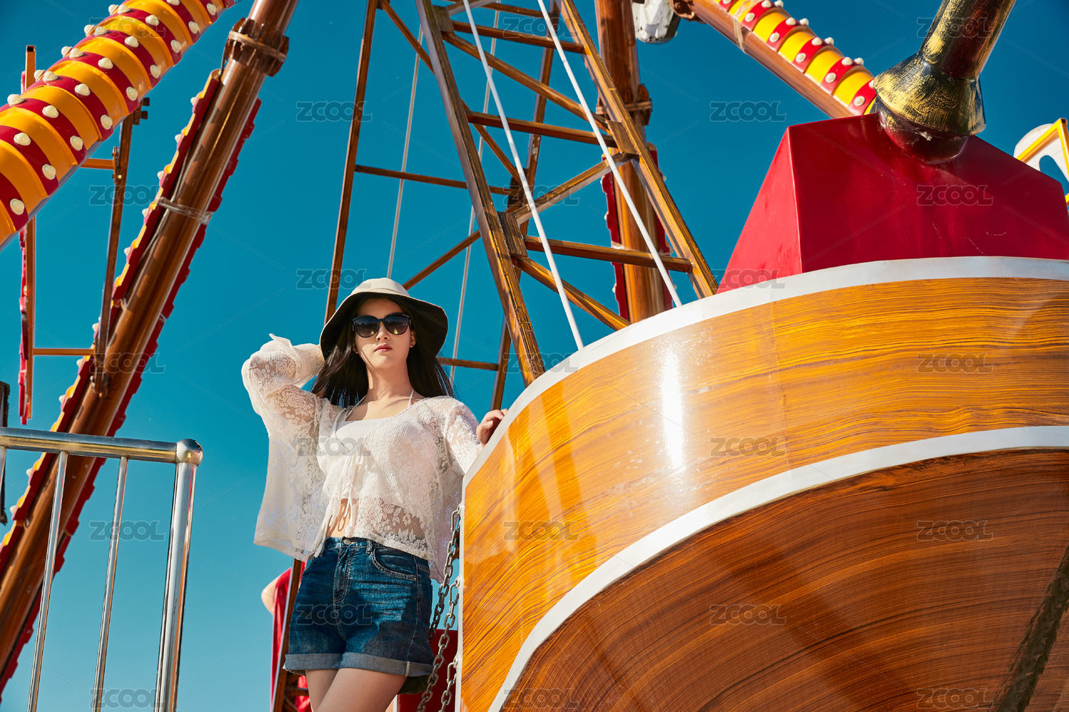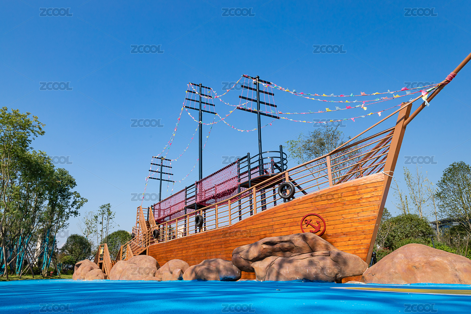 青島中山公園游樂園海盜船游樂設(shè)施特寫