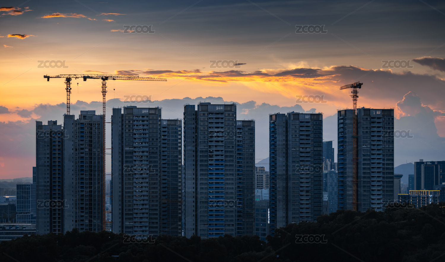 暮色中的塔吊就像一個巨大的噴火槍