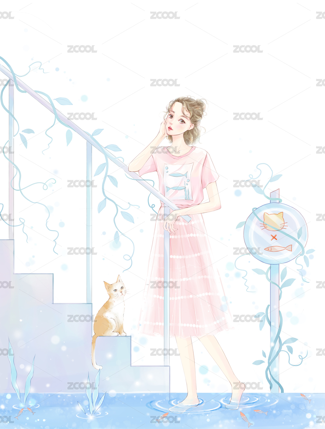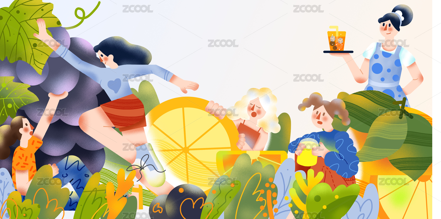 女孩們?cè)谒g自在玩耍,扁平插畫(huà)