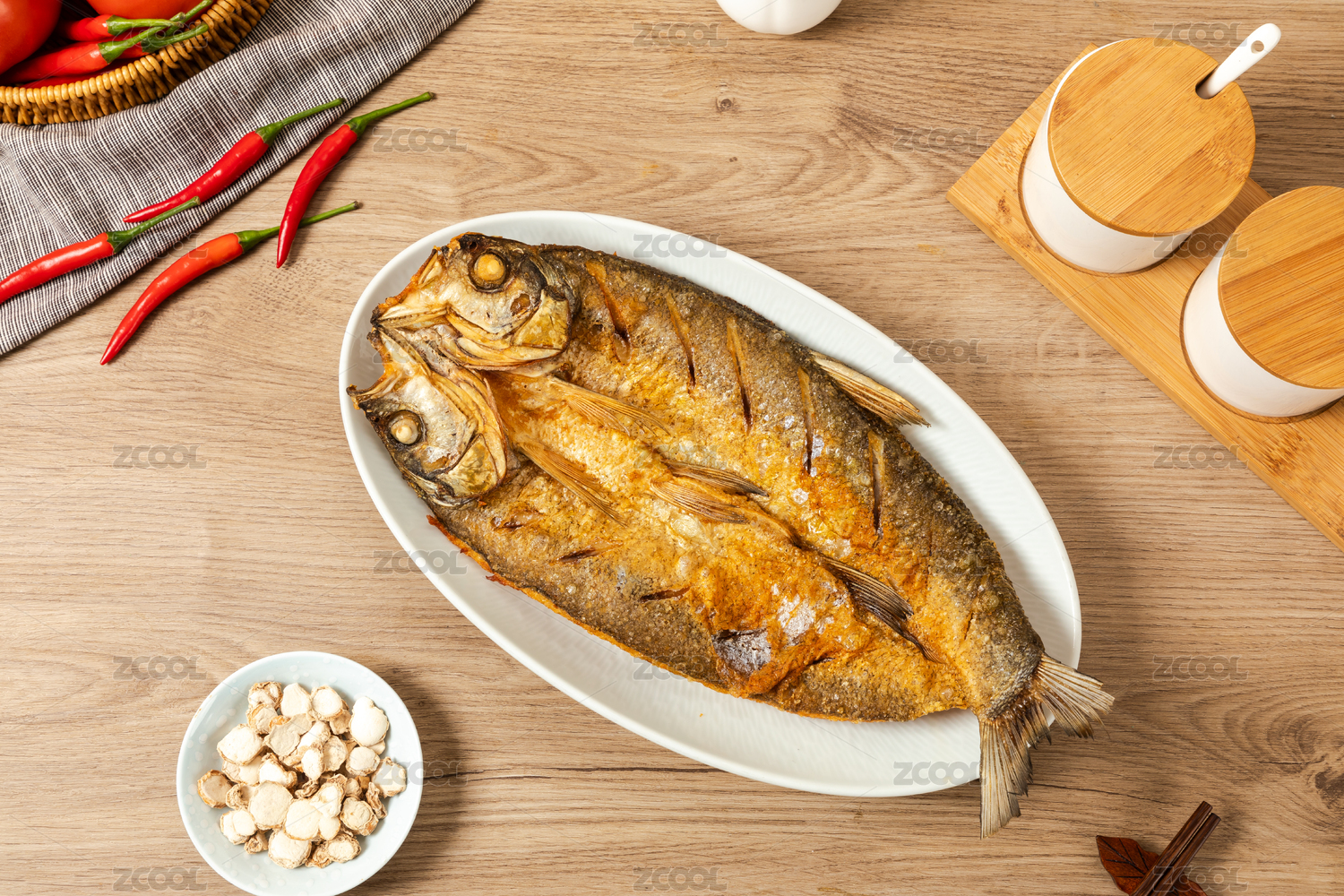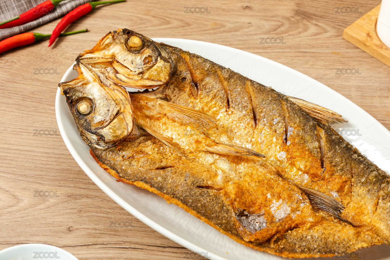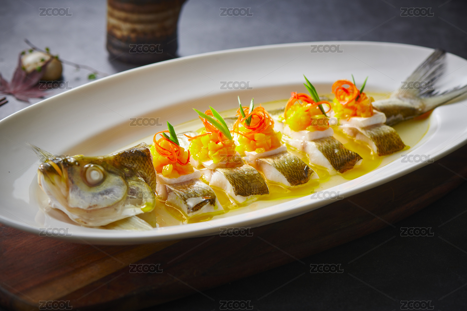 白色橢圓盤里面的清蒸翹嘴白魚