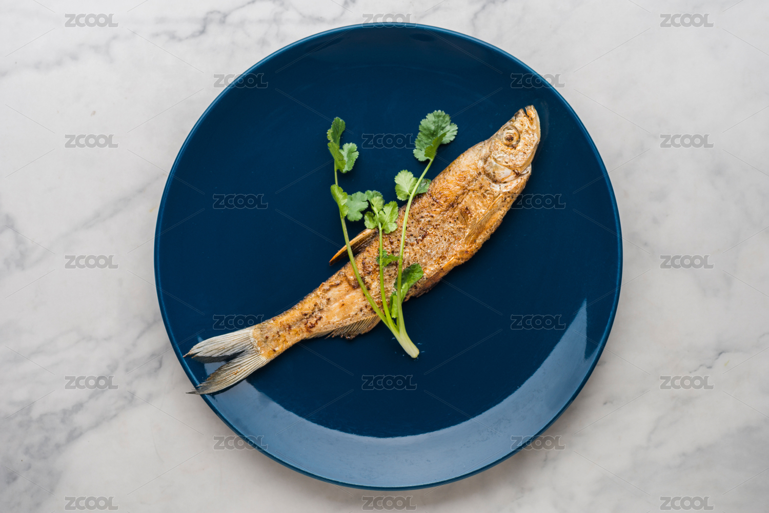 搭配有香菜的香煎翹嘴白河鮮