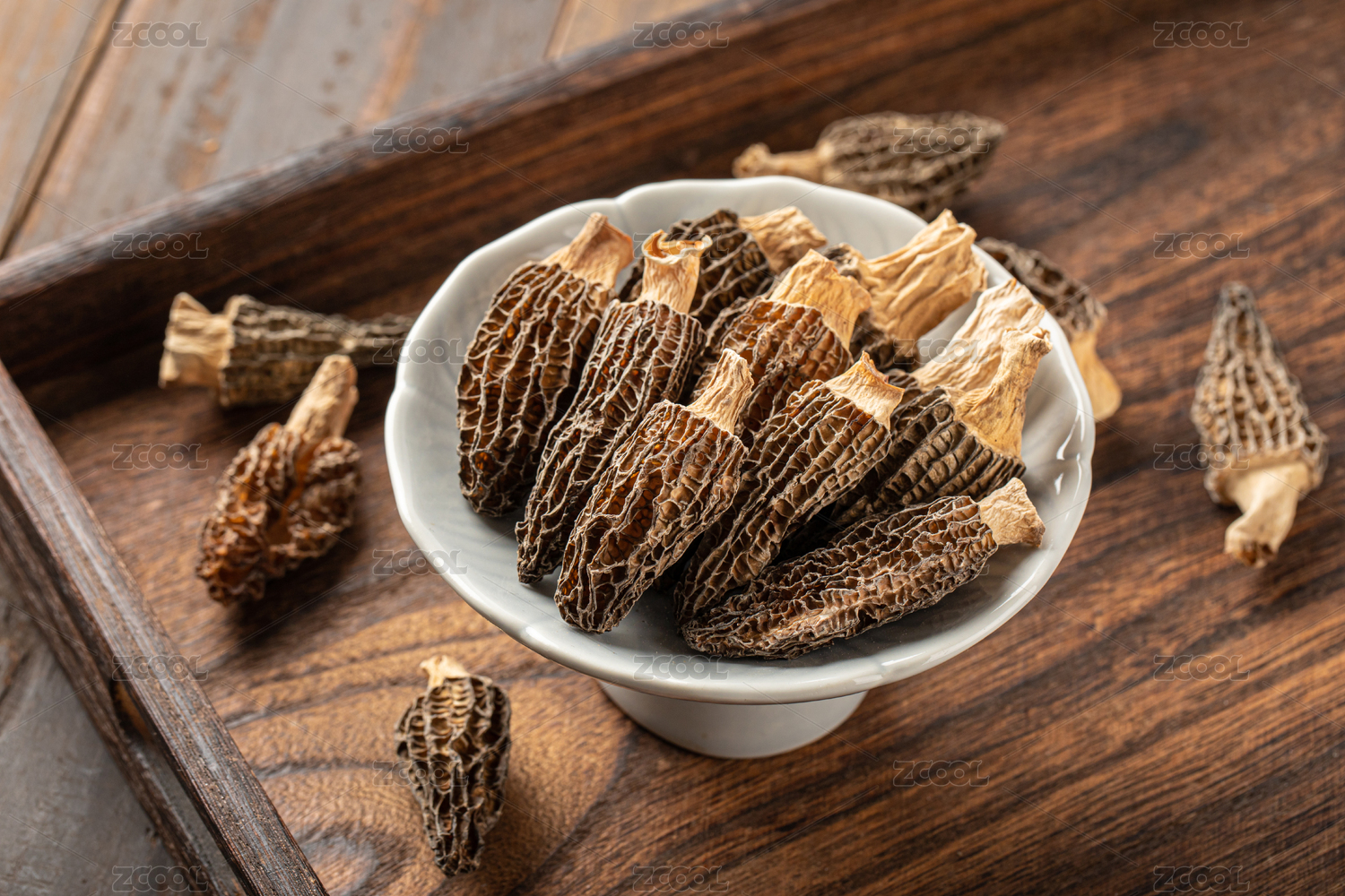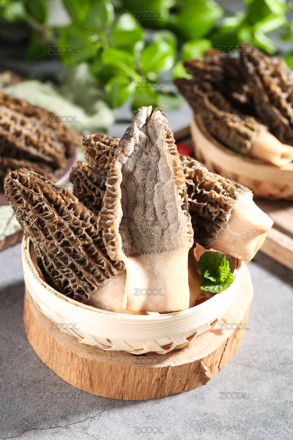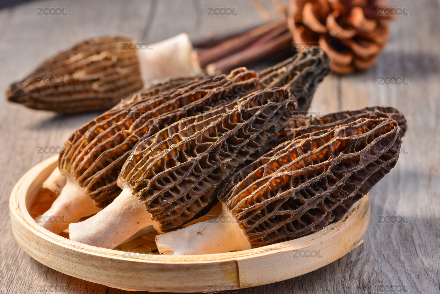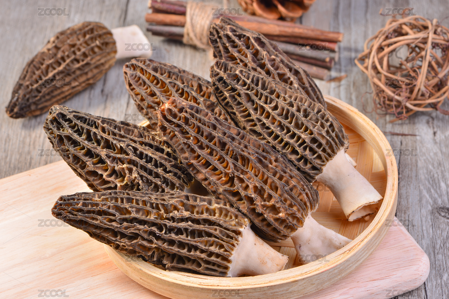 一碗羊肚菌燉湯和筷子上夾著羊肚菌