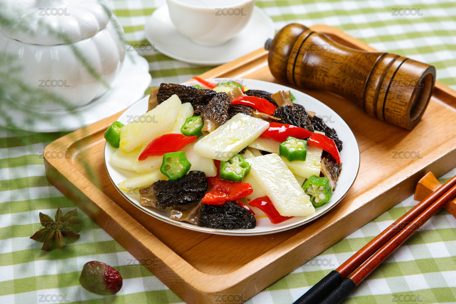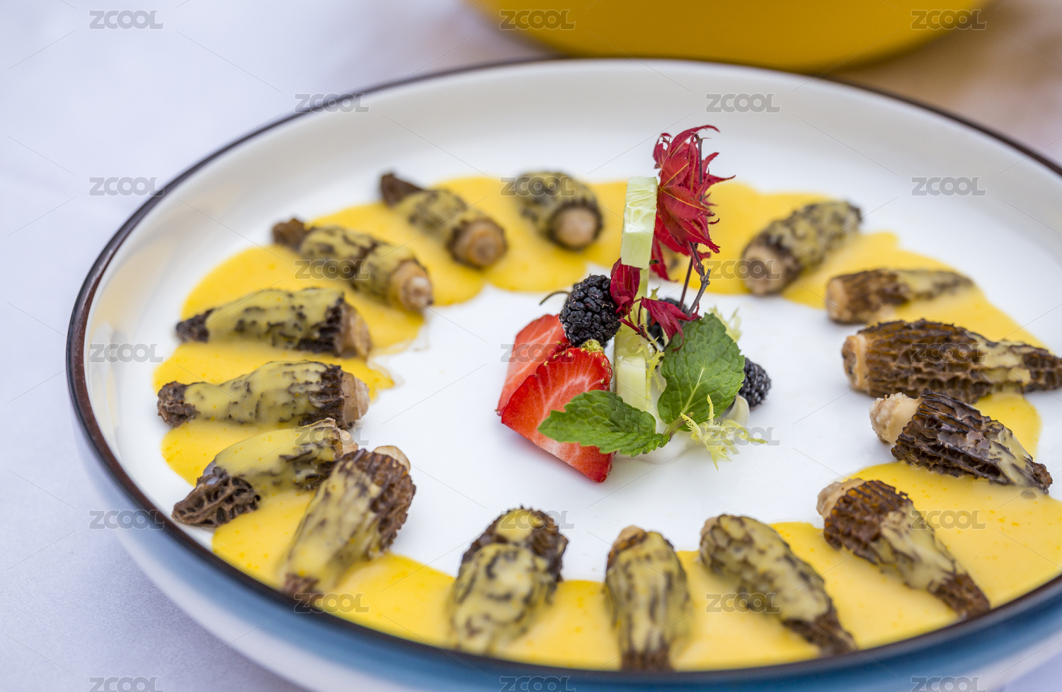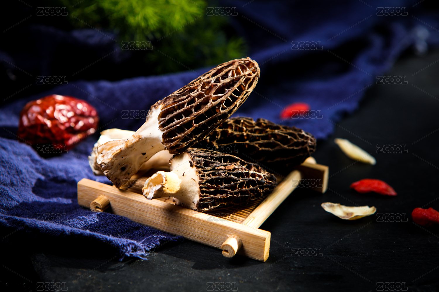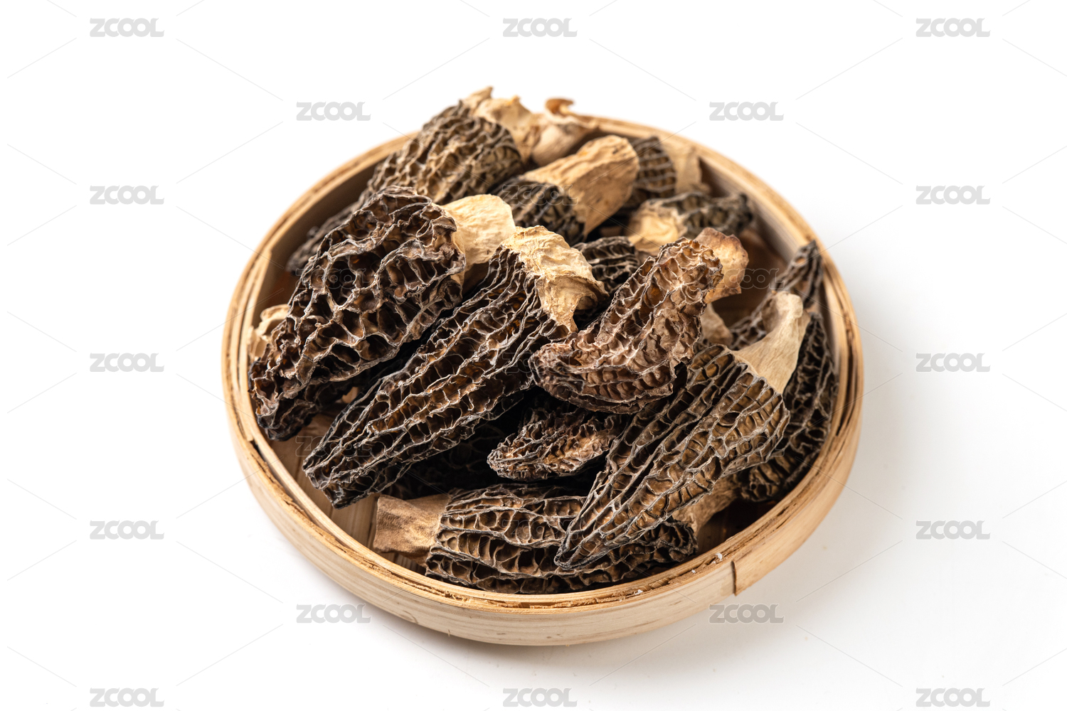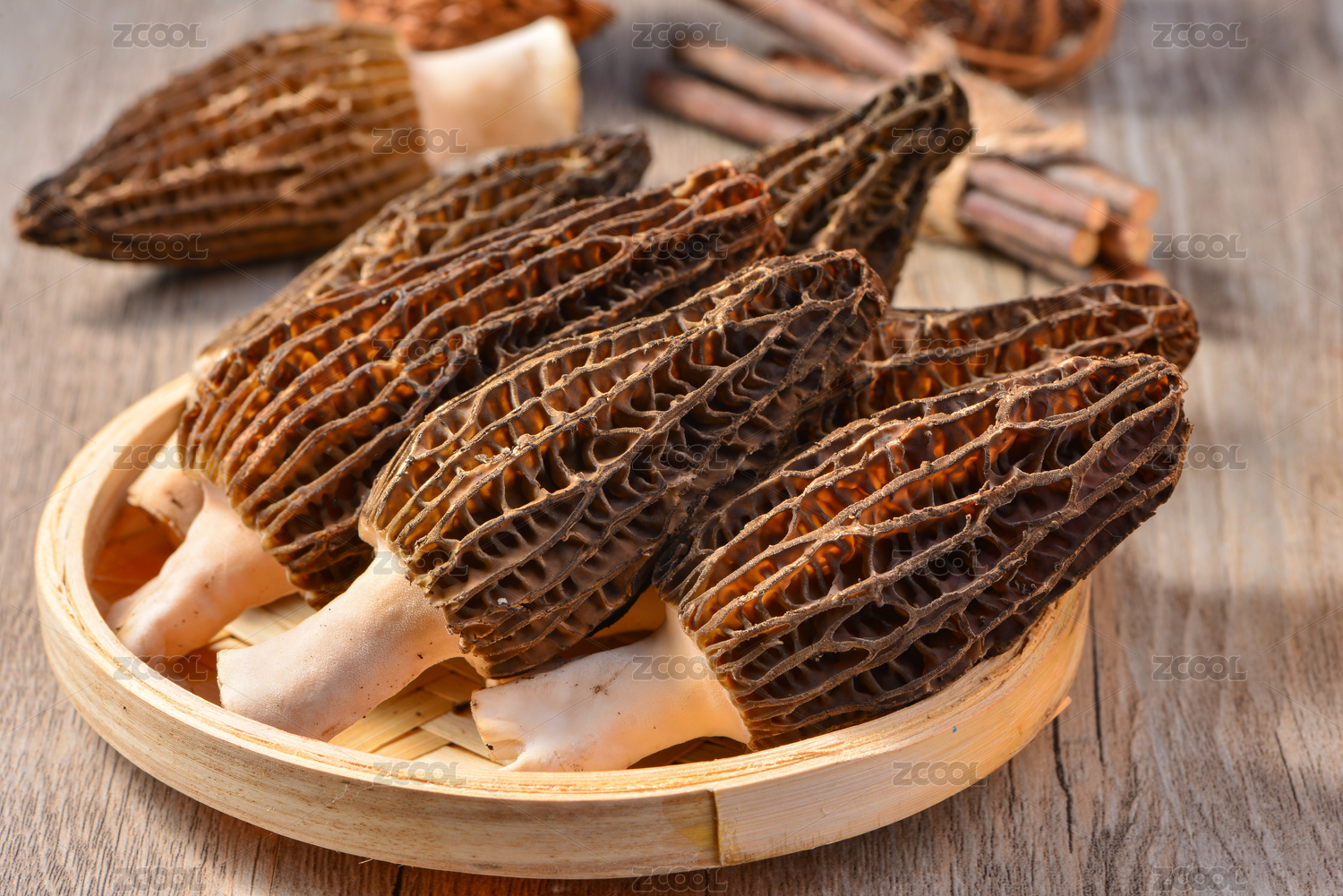一碗羊肚菌燉湯和筷子上夾著羊肚菌