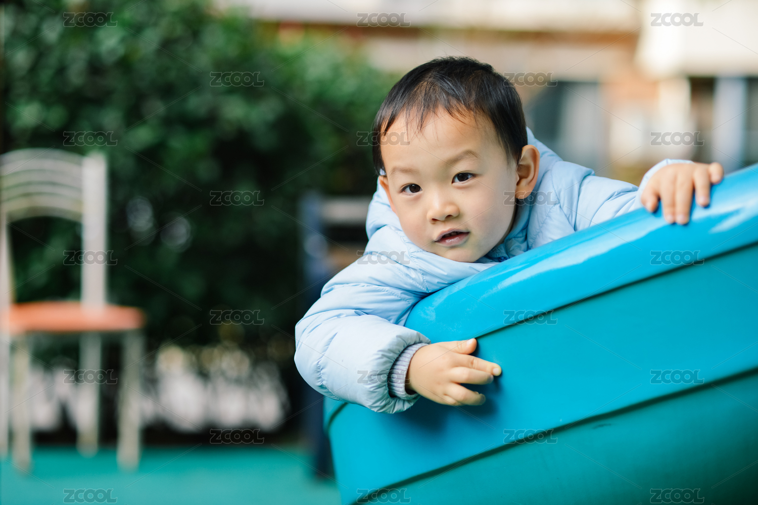 4歲兒童在小區(qū)兒童活動中心滑滑梯