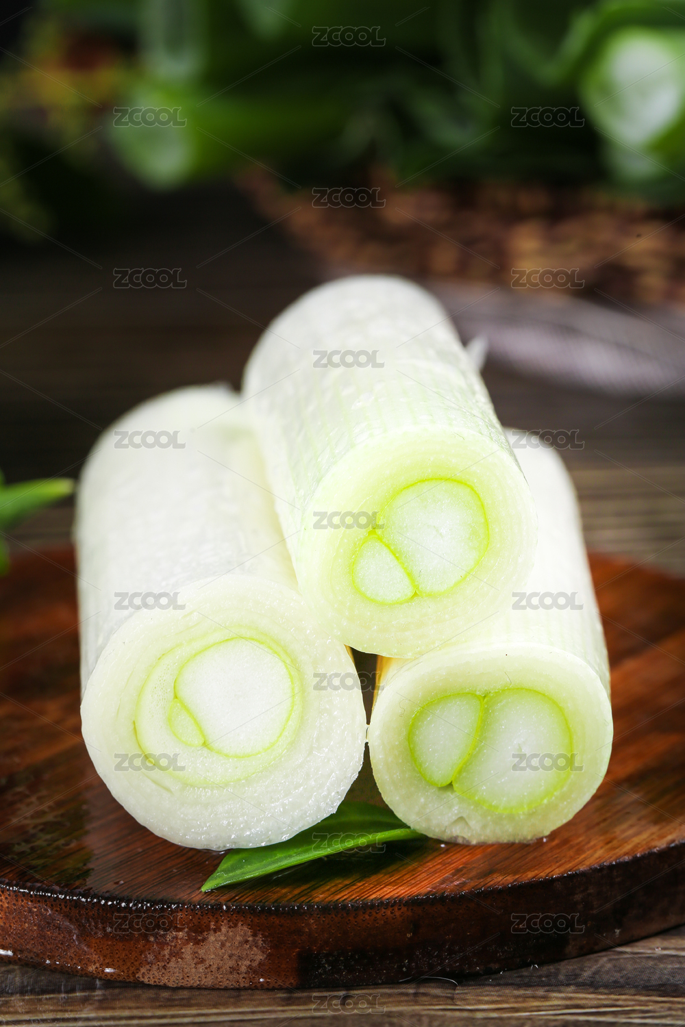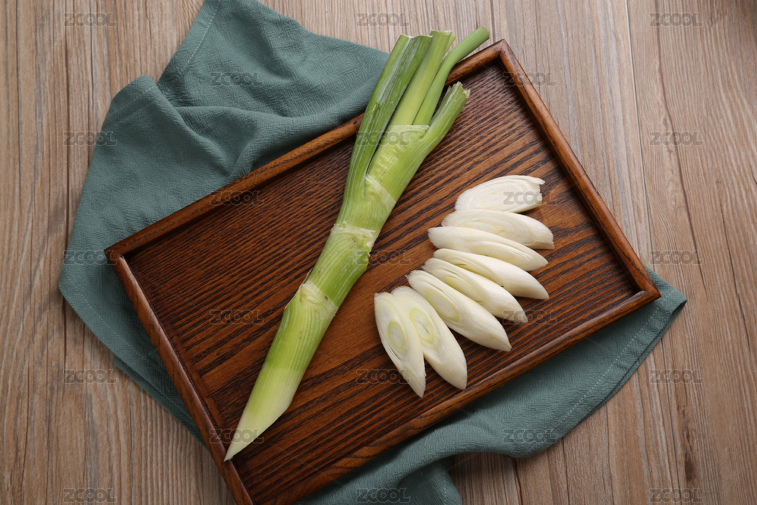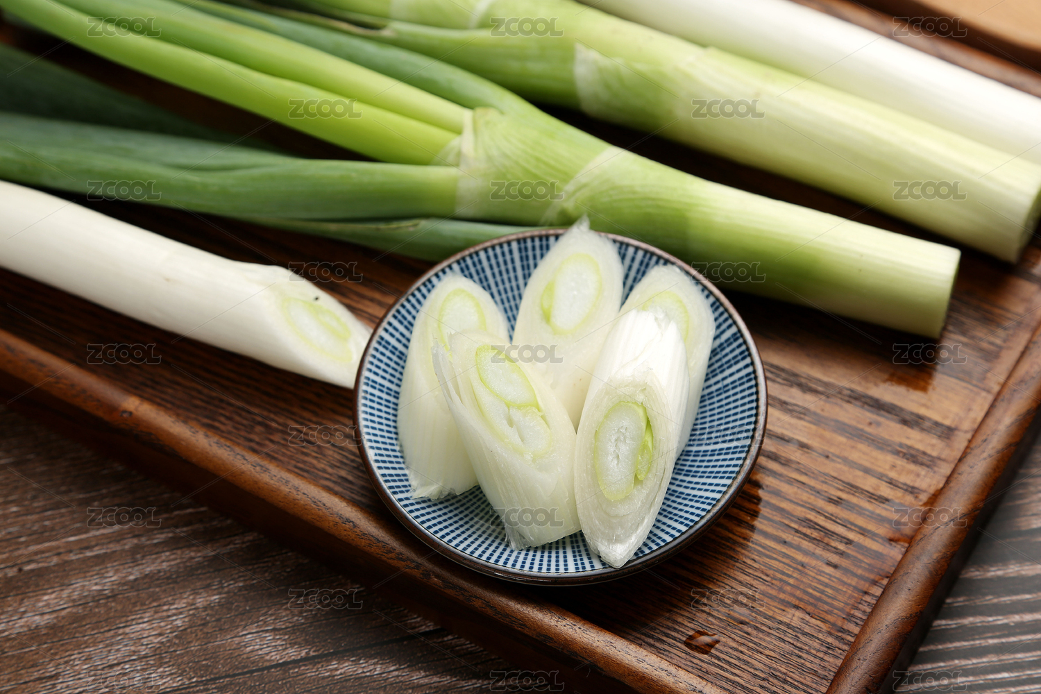 木盤上的新鮮大蔥