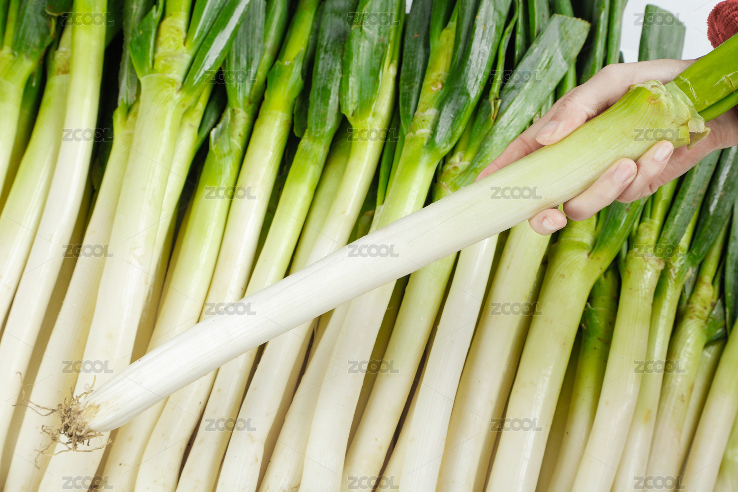 一堆大蔥和手上拿著一根大蔥