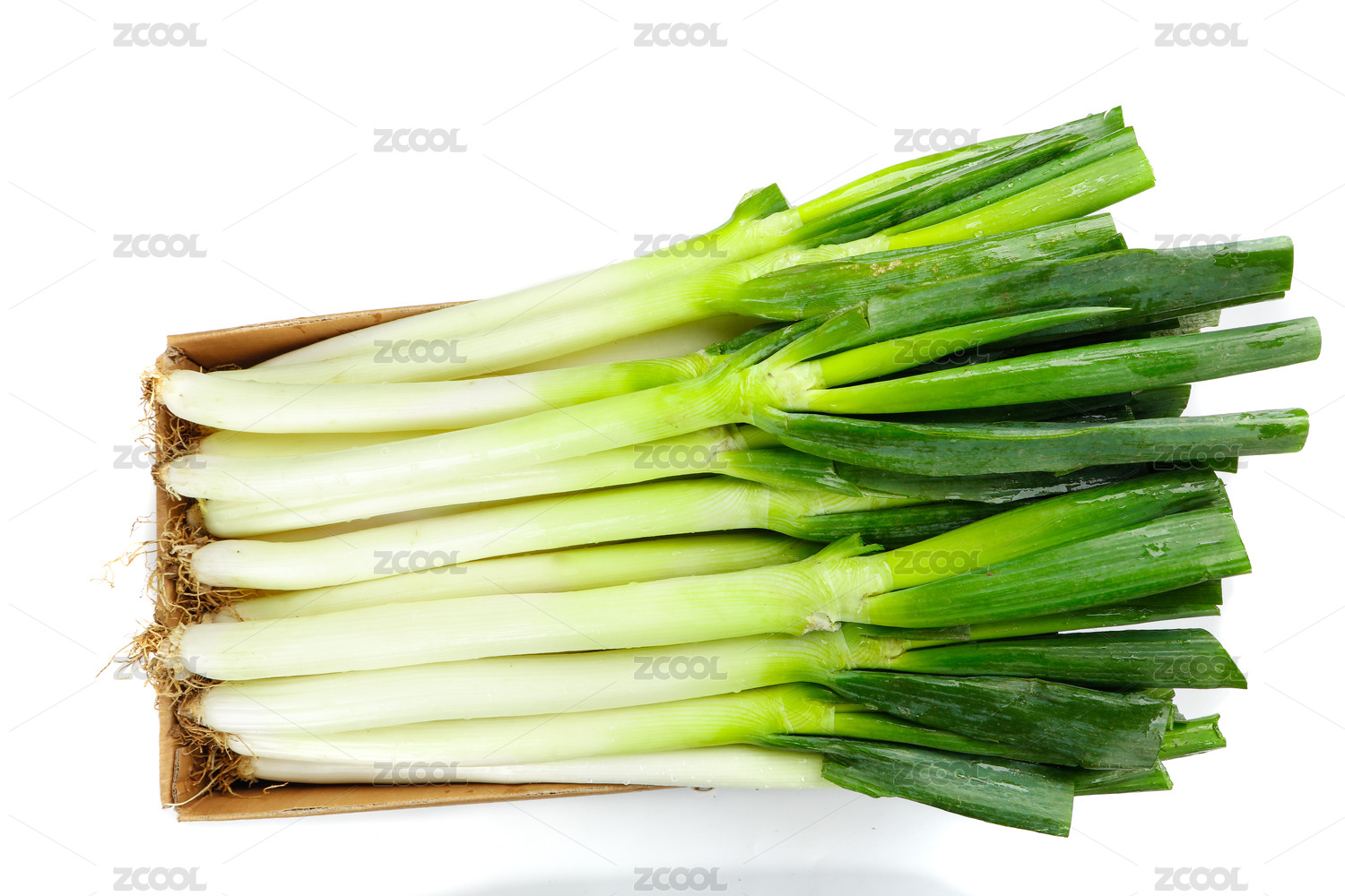白底上箱子里放著新鮮大蔥