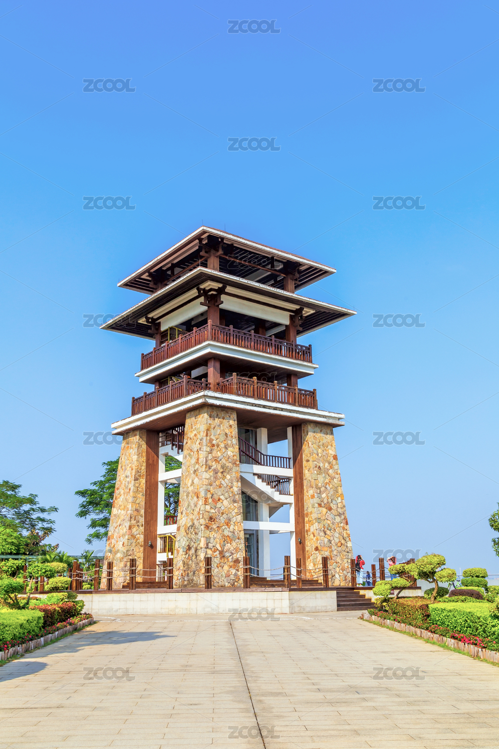 廈門市集美區(qū)集美市民公園宏偉的古代塔樓