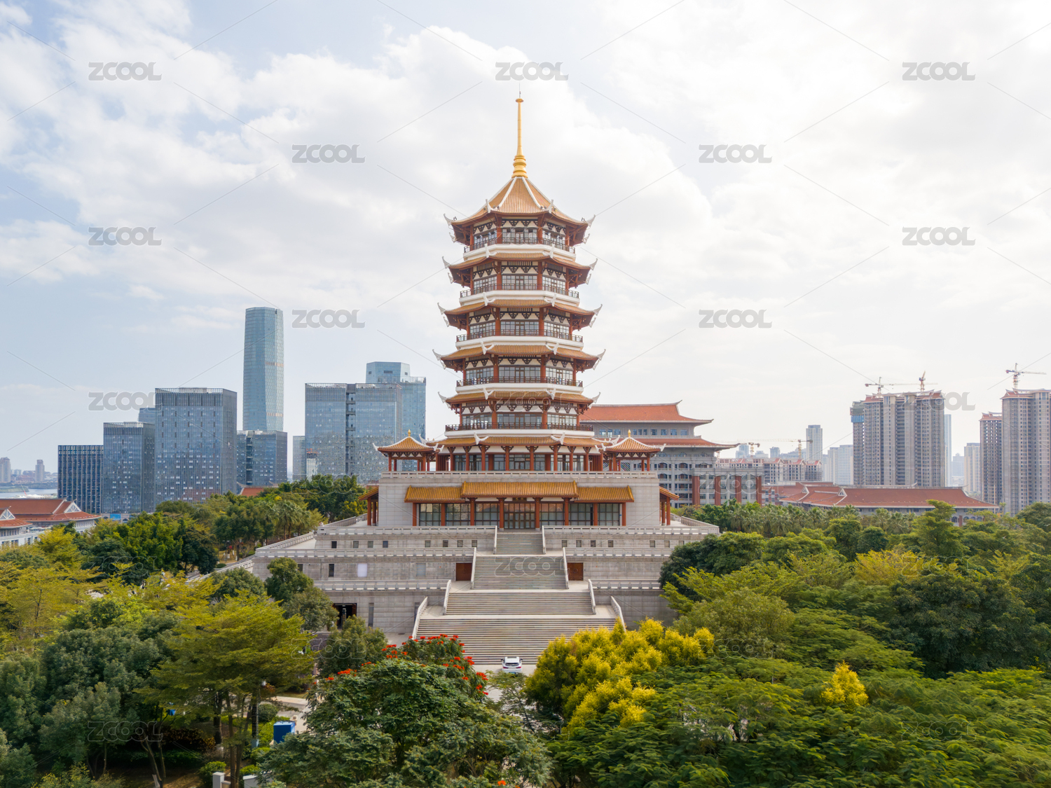 廈門市集美區(qū)集美市民公園塔樓與城市景觀