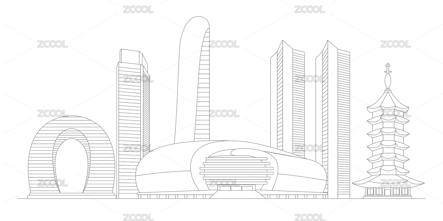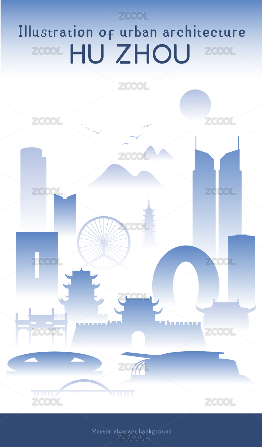中國(guó)浙江省湖州市地標(biāo)建筑剪影