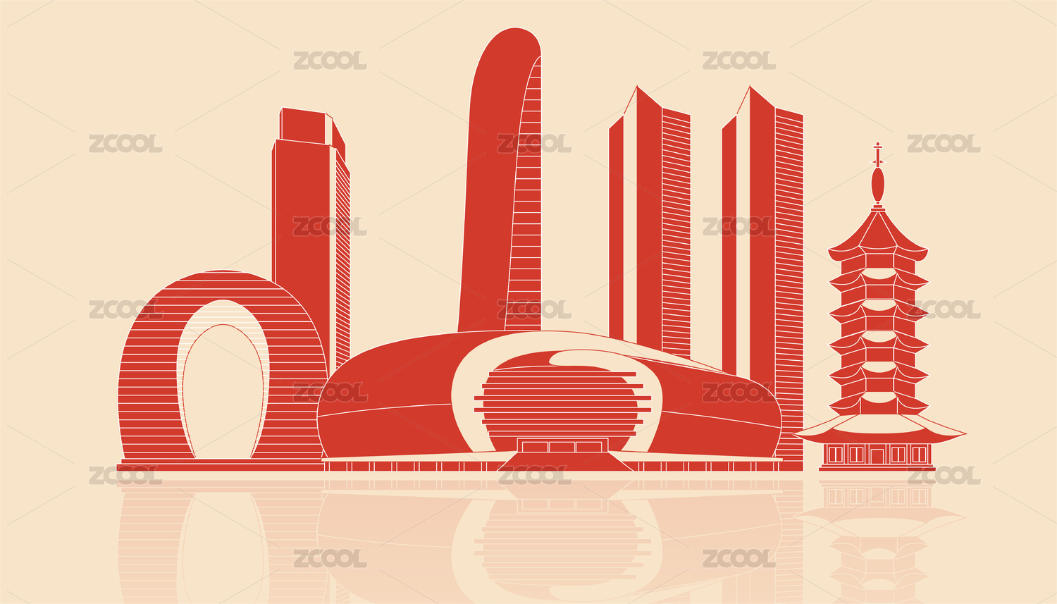 湖州城市地標(biāo)建筑國(guó)潮矢量插畫
