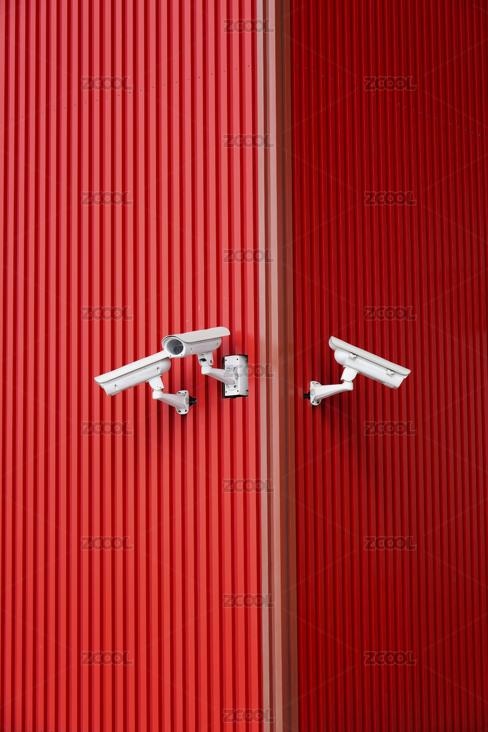 紅色條紋墻面與攝像頭