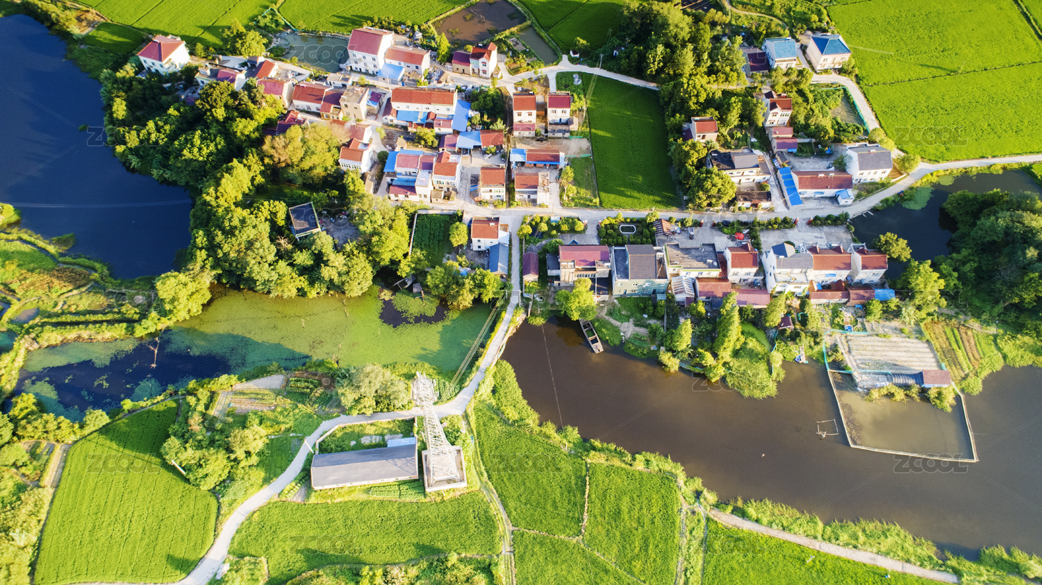 航拍中國安徽省宣城市夏日鄉(xiāng)村生態(tài)田園風(fēng)光