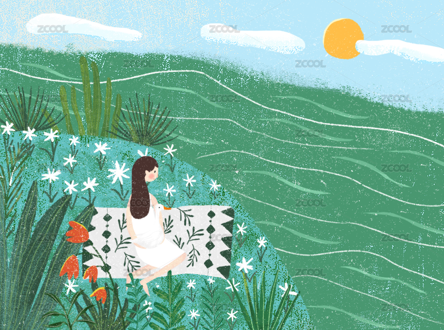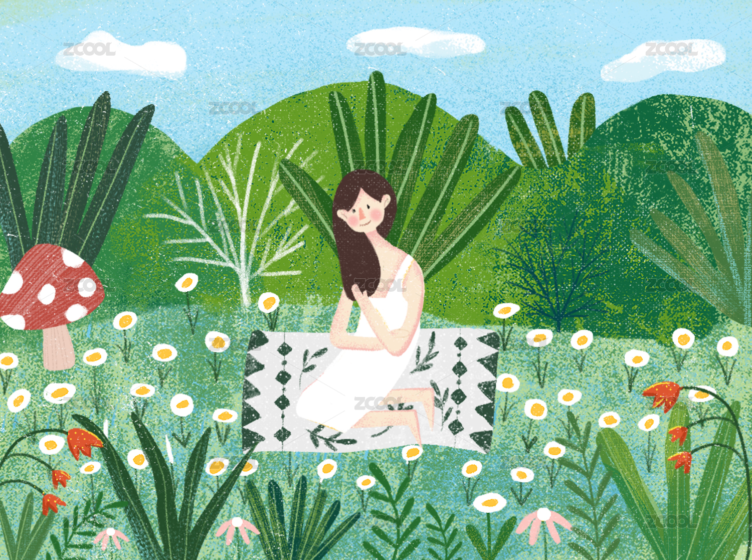 卡通出行踏青放松心情風(fēng)景背景矢量插畫