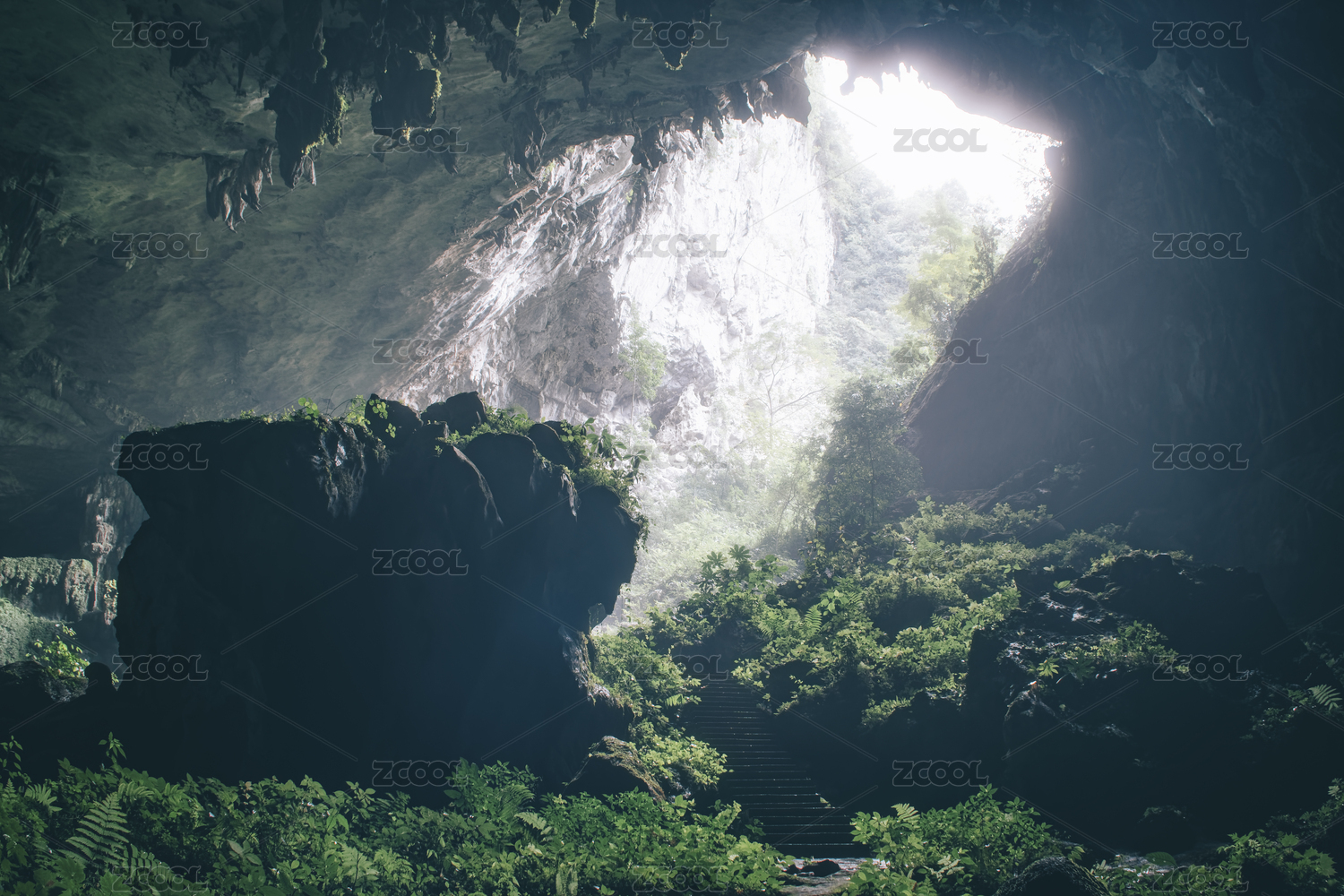 廣西柳州箭盤山溶洞內向外看