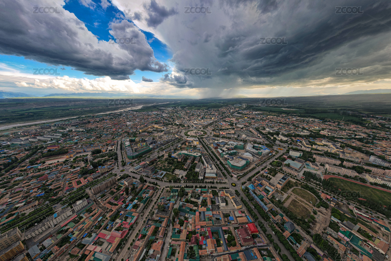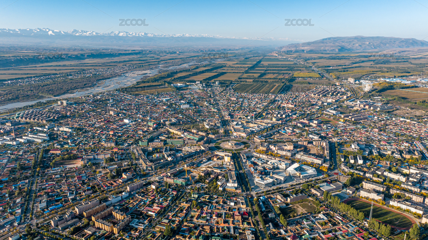 航拍中國新疆八卦城特克斯城市風(fēng)光