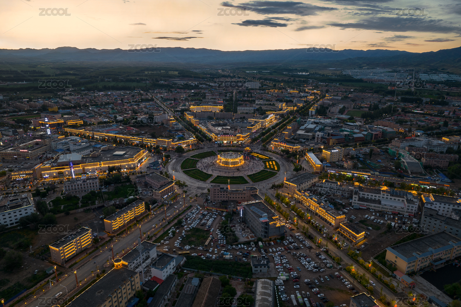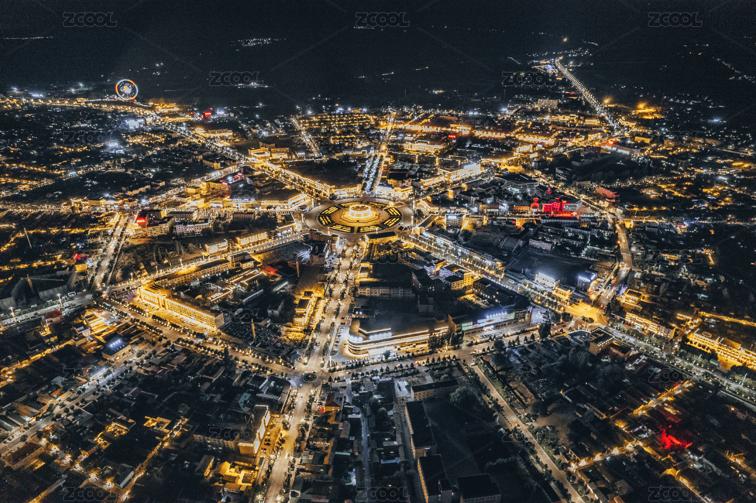中國新疆伊犁特克斯城市航拍八卦城夜景風(fēng)光