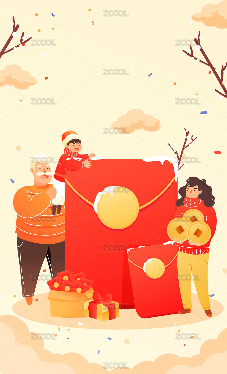 2020新年春節(jié)喜慶紅包理財金融活動卡通背景矢量插畫