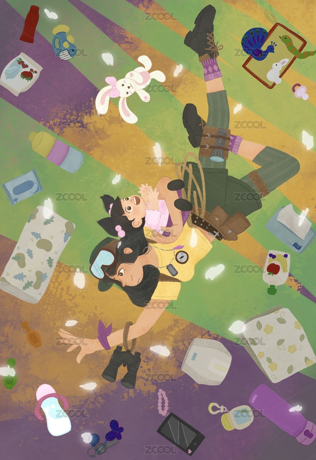 可愛寶媽和寶寶用品 描邊風(fēng)